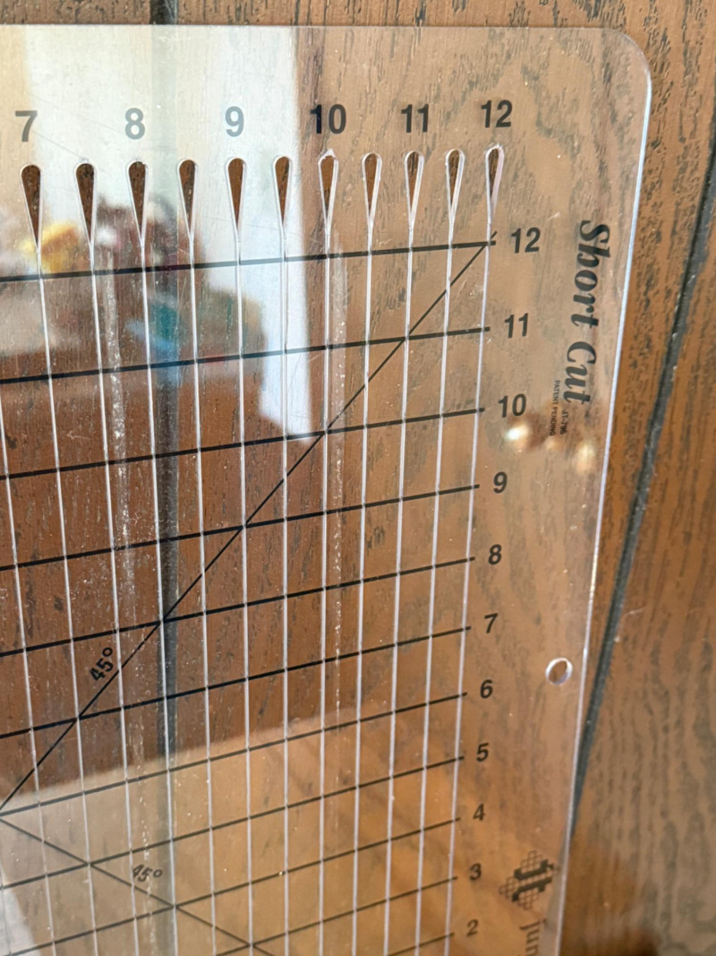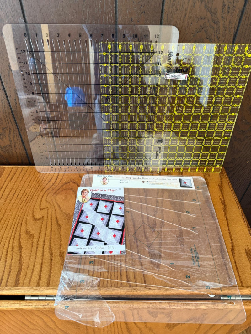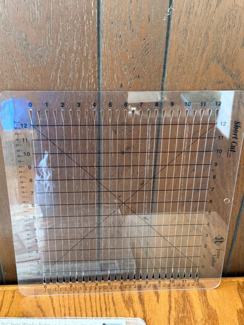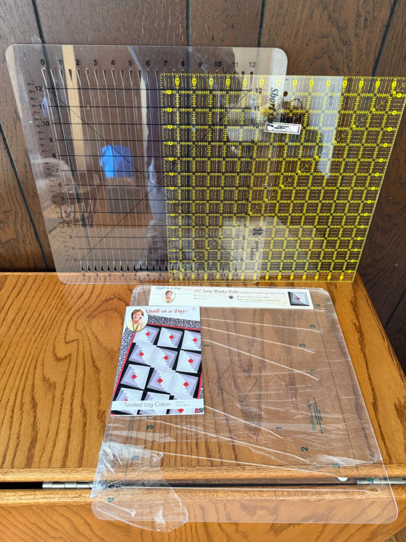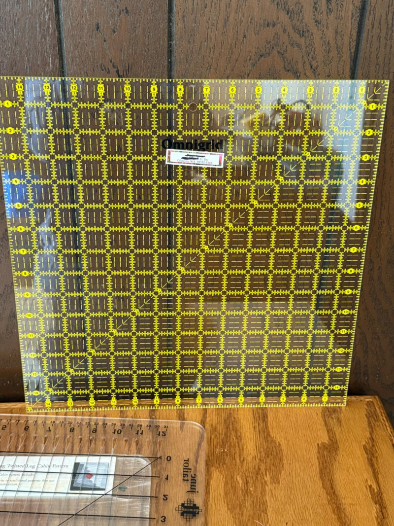 2.5” Strip Wonky Ruler with Twisted Log Cabin Pattern Short Cut Grid Omnigrid 15” square