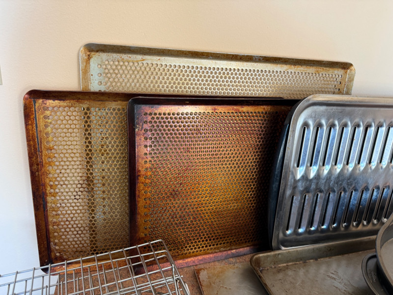 Le Creuset enameled casserole baker Bakeware DeMarle at Home Holey Pans Baking Sheets muffin mold Cookie cutters Roasting pan, round cakes