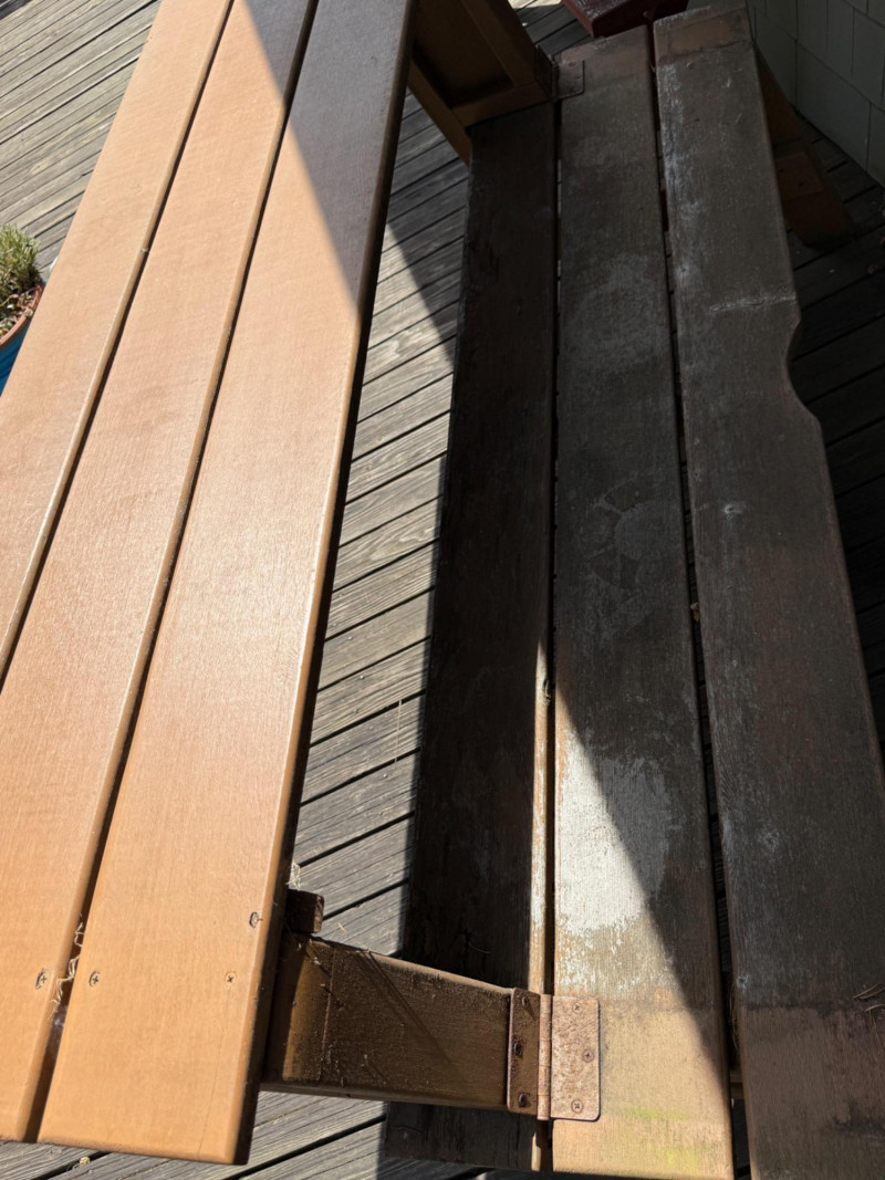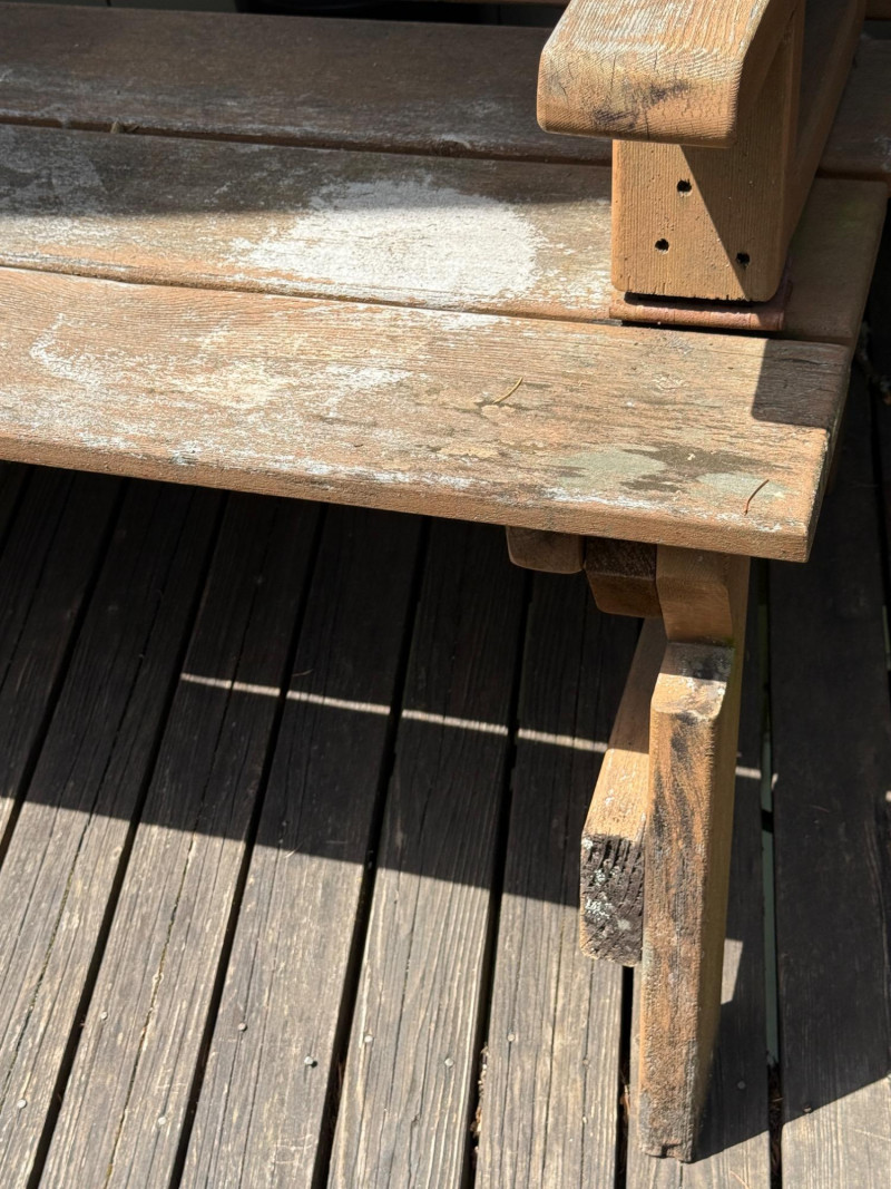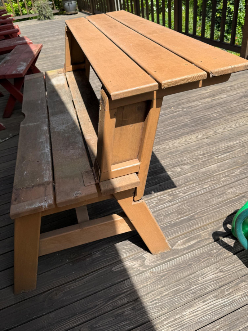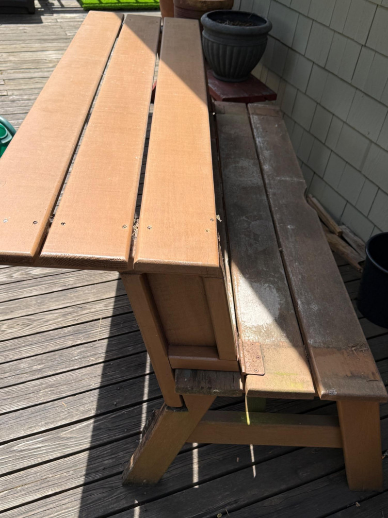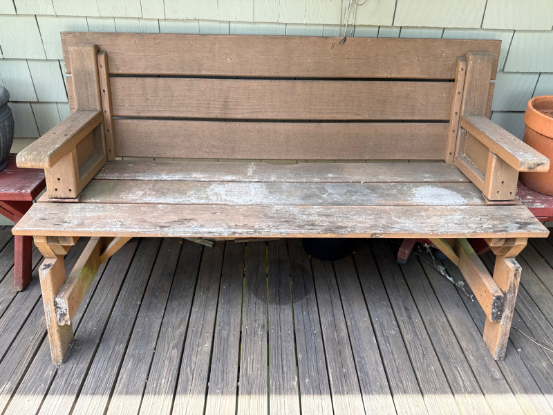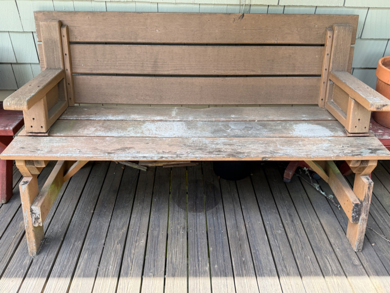 Convertible Bench to Picnic Table. 60x34.5 top of bench back when used as a bench.