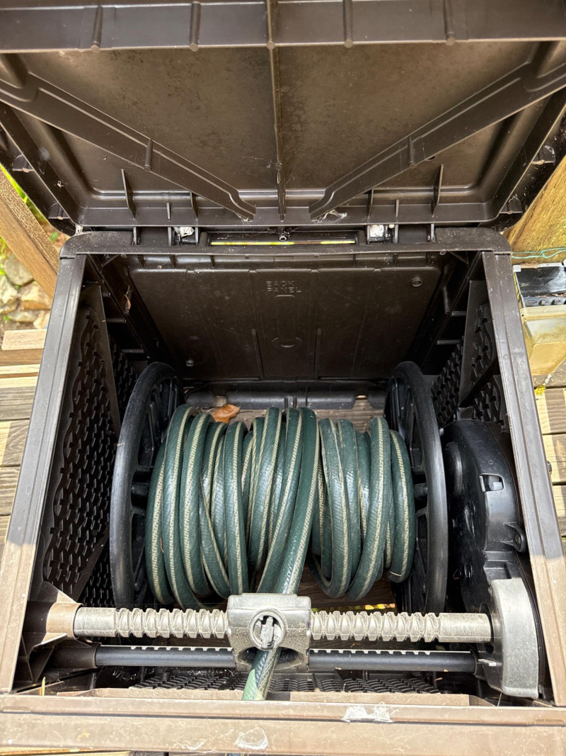 Lot # 102 - Suncast Hose Reel Box Hose and Wand