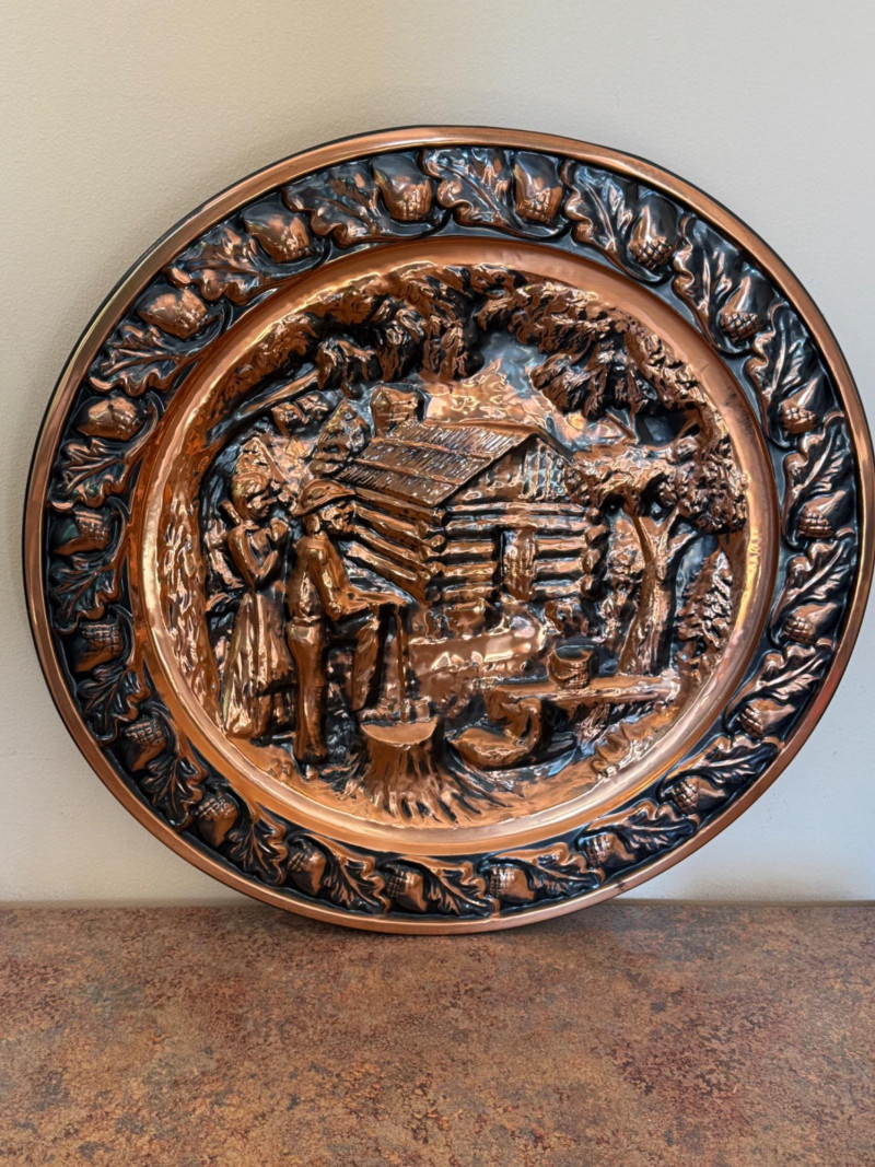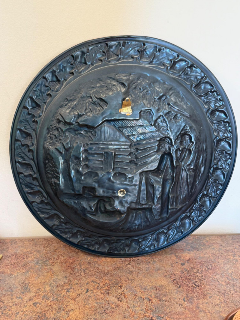 Log Cabin Wall Hanging & Pots Coppercraft guild wall hanging is 20” diameter.