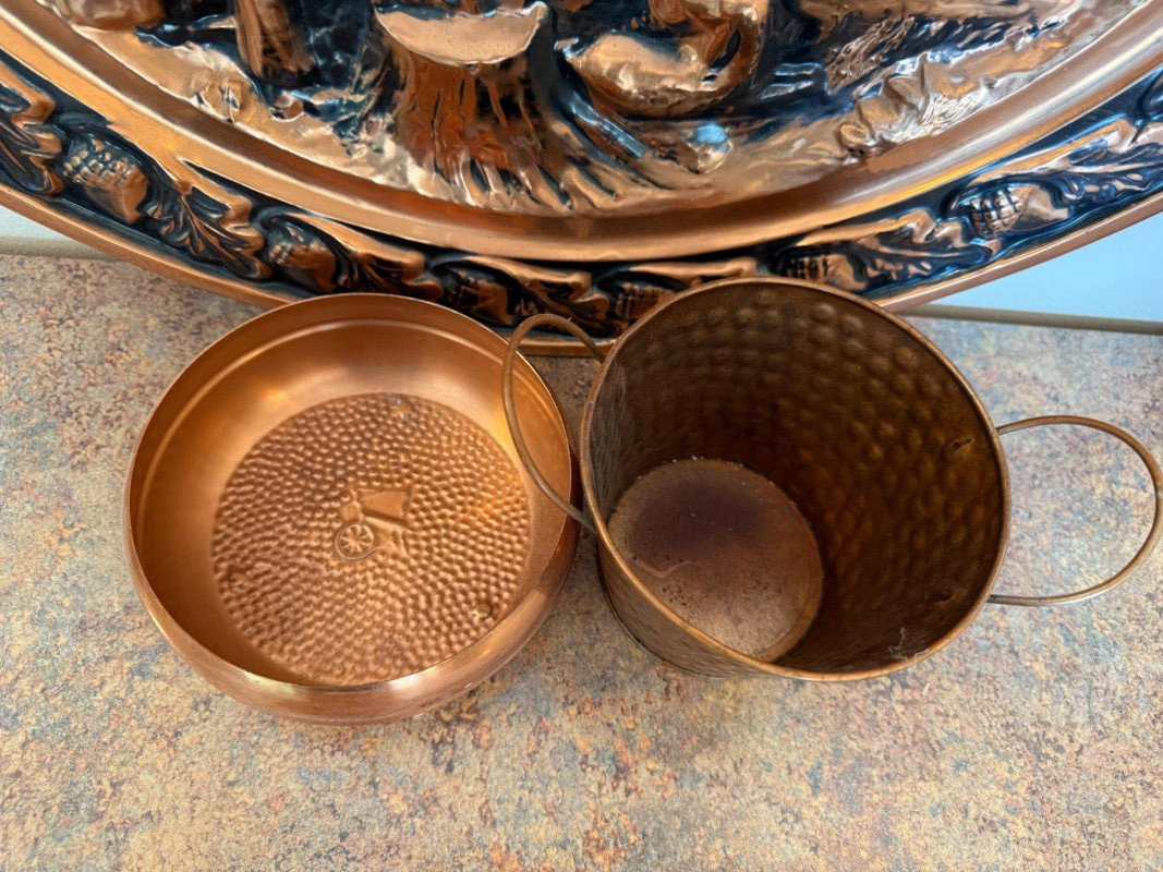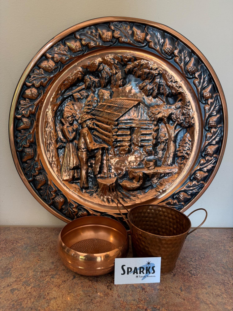 Lot # 105 - Coppercraft Guild Log Cabin Wall Hanging & Pots