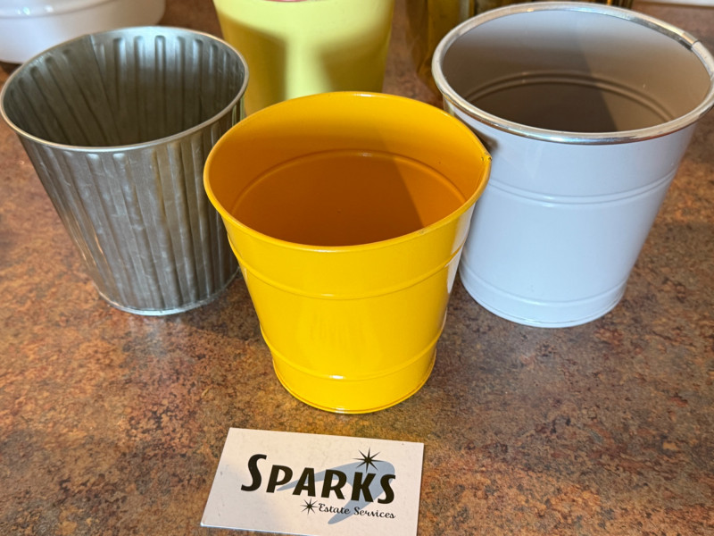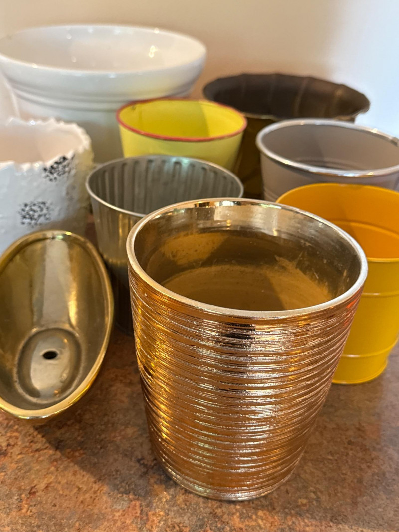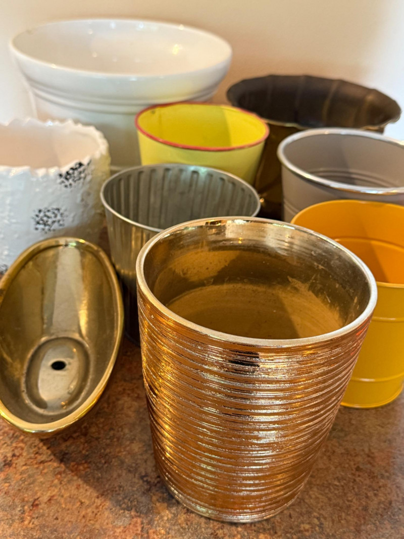 9 Indoor Plant Pots on the smaller side 4 ceramic largest is 8.5” 5 metal