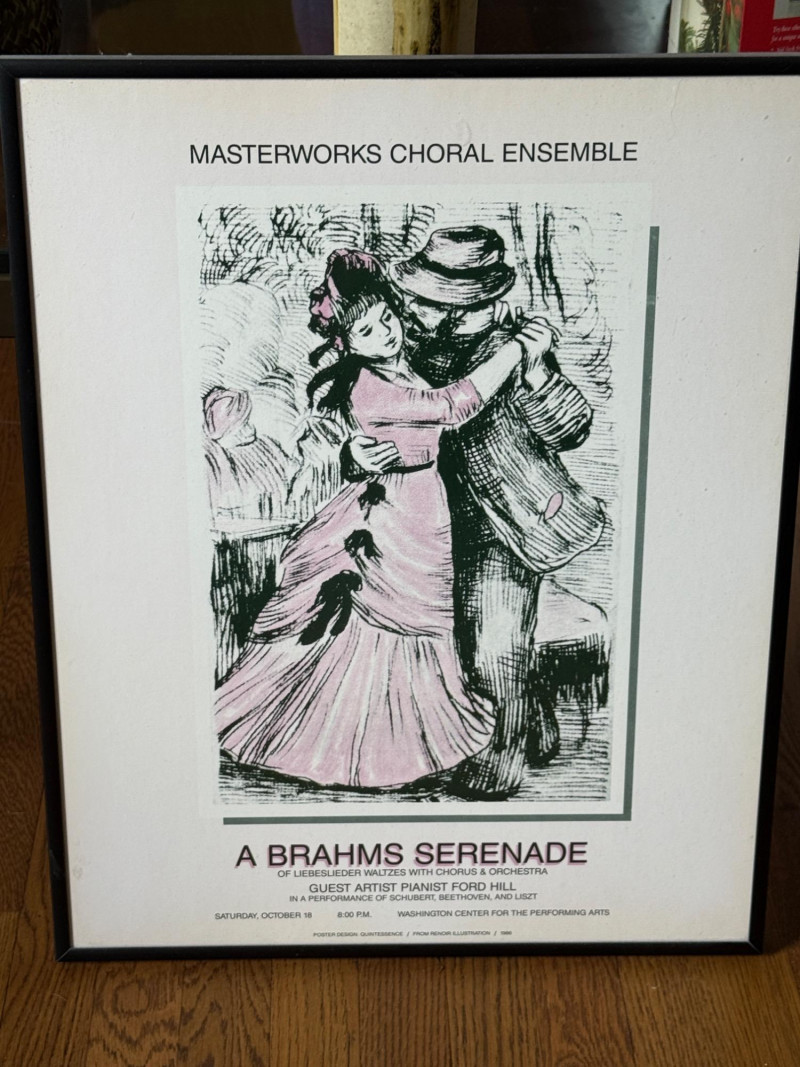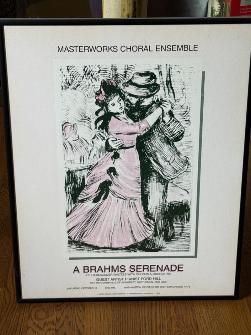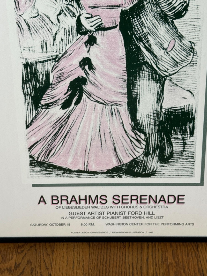 Masterworks Choral Ensemble Poster From WA Center For Performing Arts. A Brahms Serenade. In black metal frame under glass.
