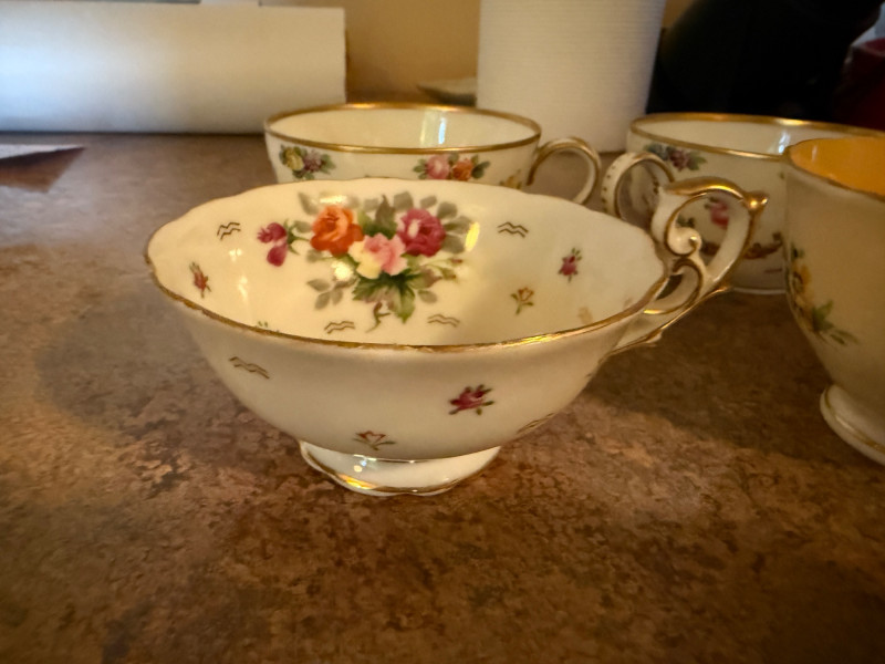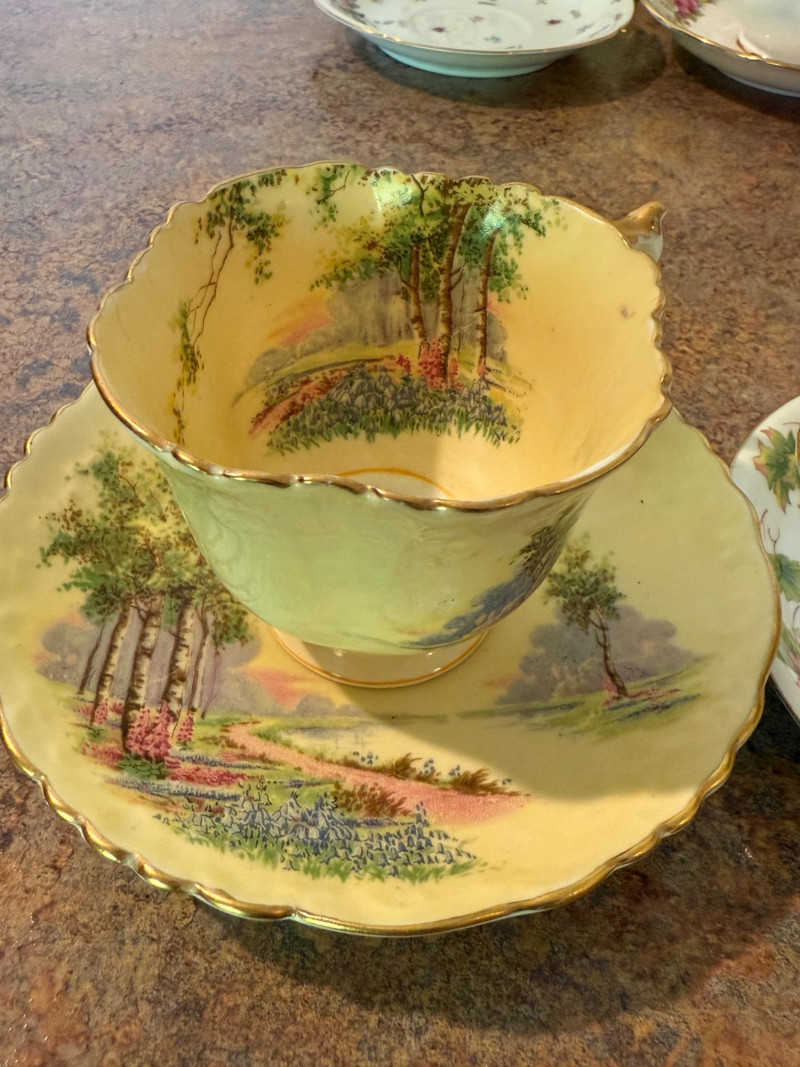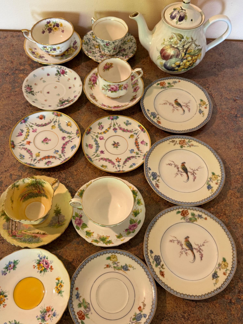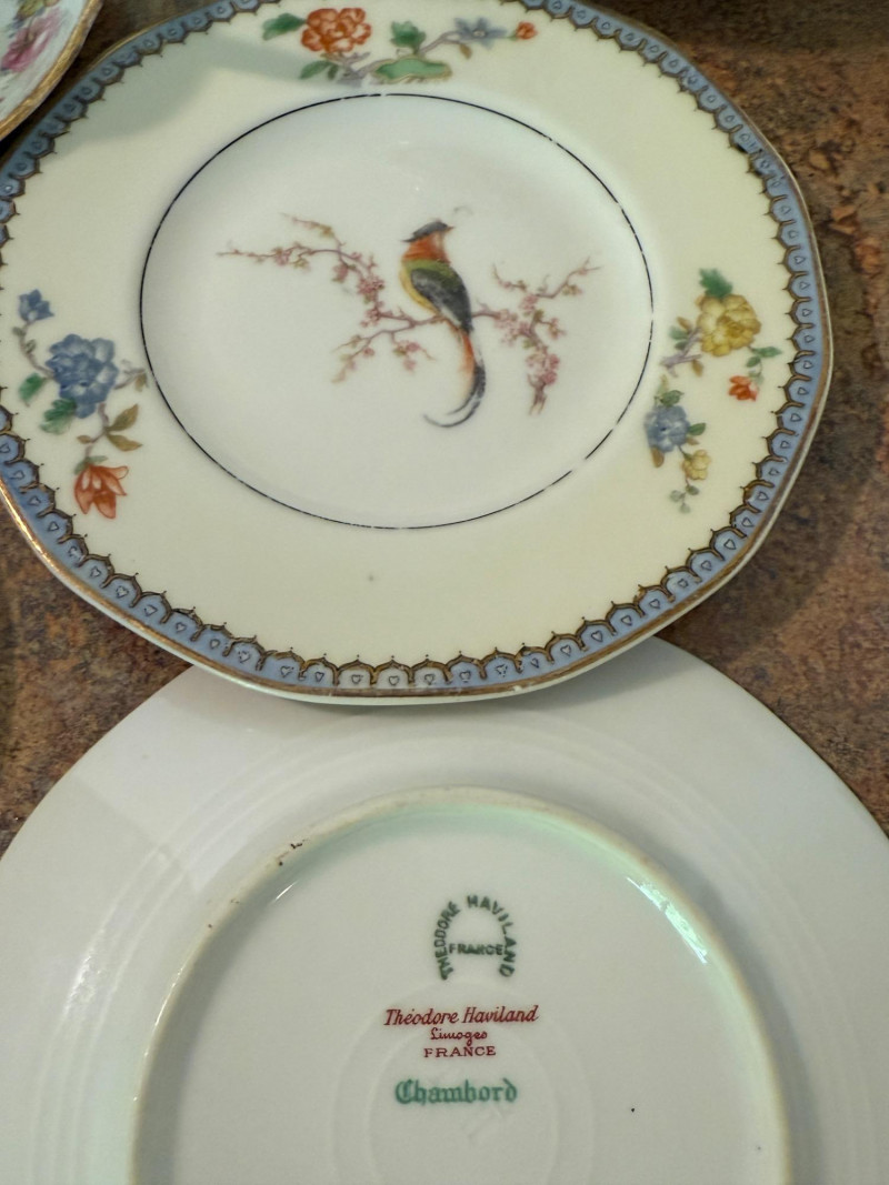 3 matching 1920-30’s Haviland Limoges Chambord China plates and one saucer 4 additional cups were located and added to the photos at the end. Aynsley China Royal Albert Chatsworth Occupied Japan bone china Shelley Clarence Rosina “June” bone china Arthur Wood and Son hand painted teapot