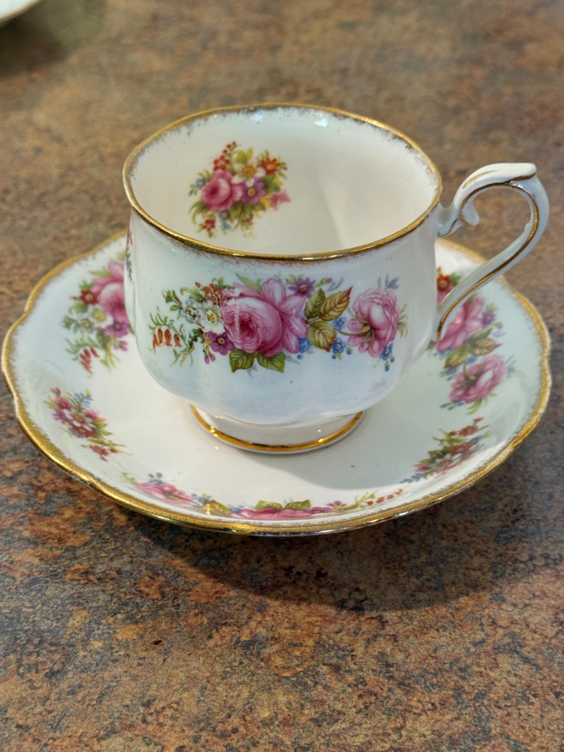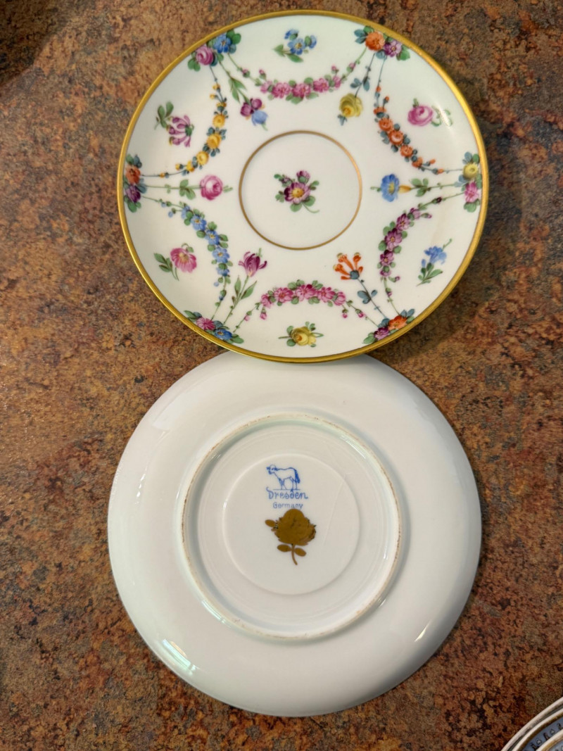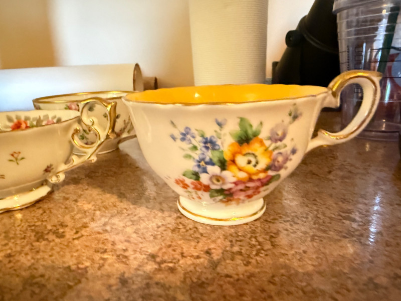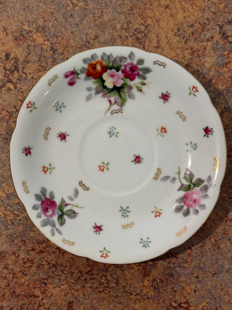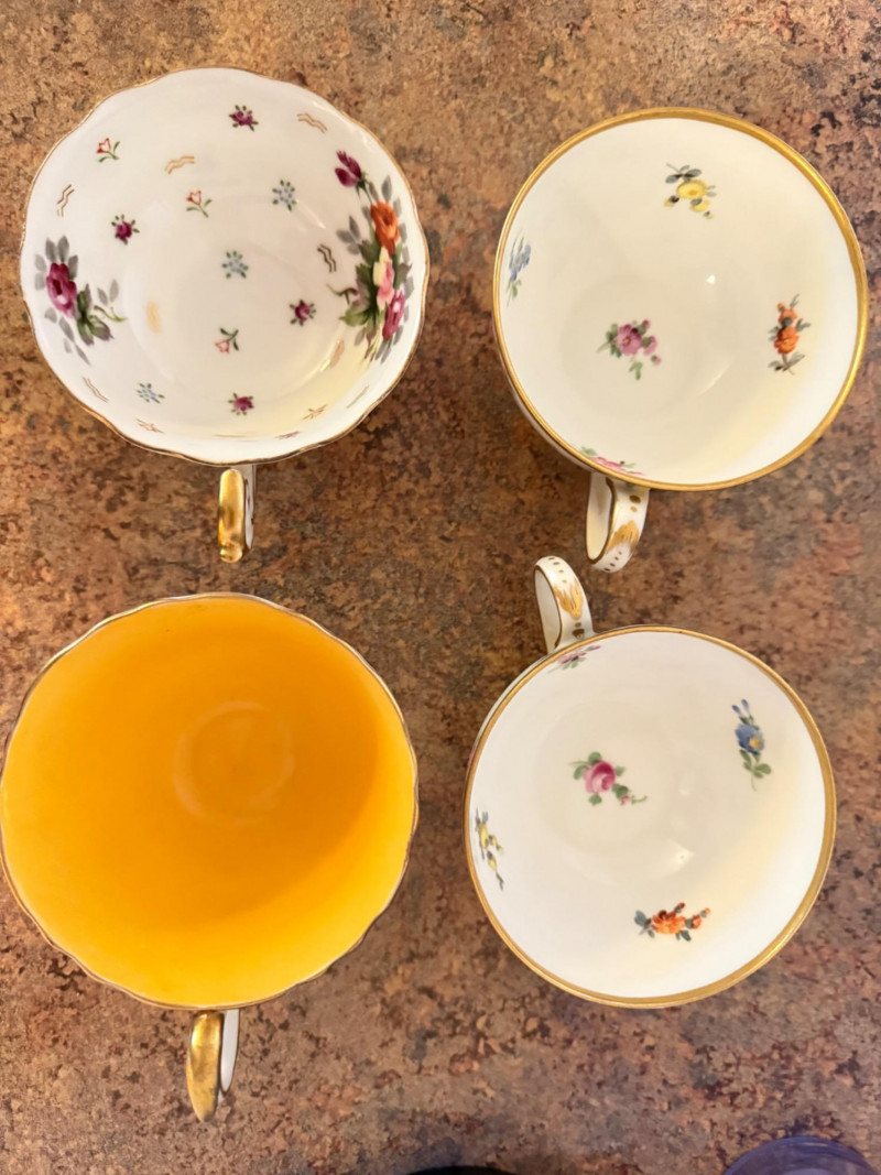 3 matching 1920-30’s Haviland Limoges Chambord China plates and one saucer 4 additional cups were located and added to the photos at the end. Aynsley China Royal Albert Chatsworth Occupied Japan bone china Shelley Clarence Rosina “June” bone china Arthur Wood and Son hand painted teapot