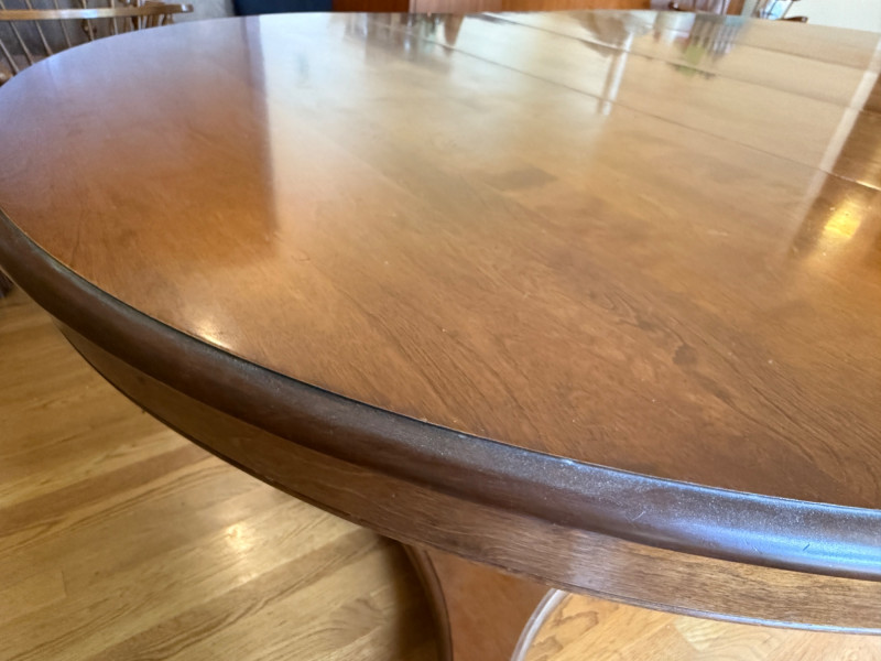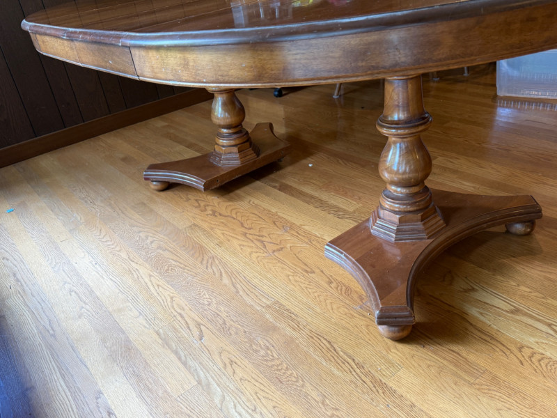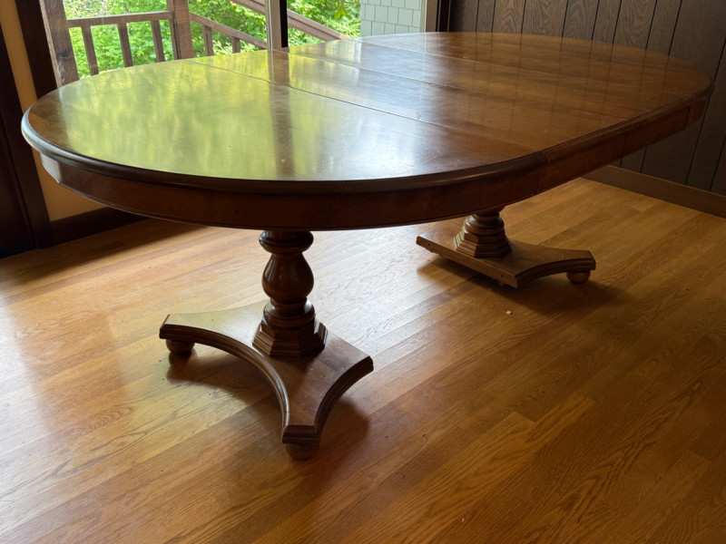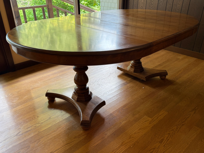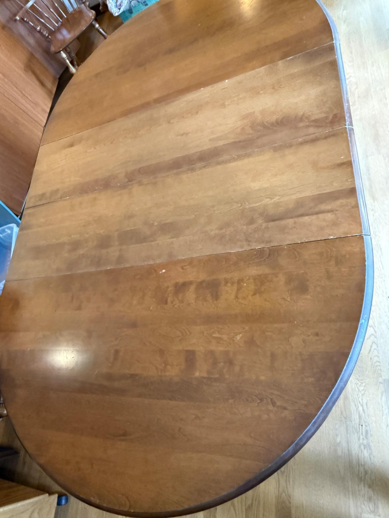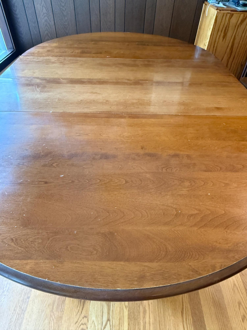 Vintage Oval Cal Shops Maple Dining Table with 2 Leaves and table protector.