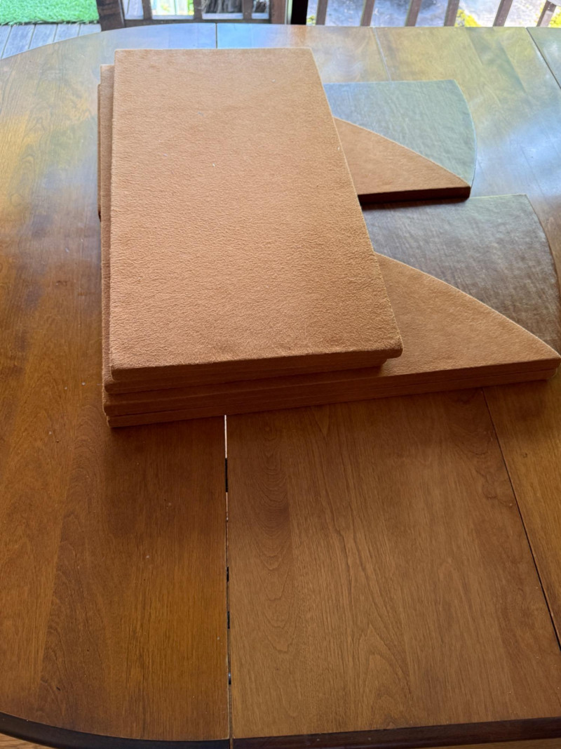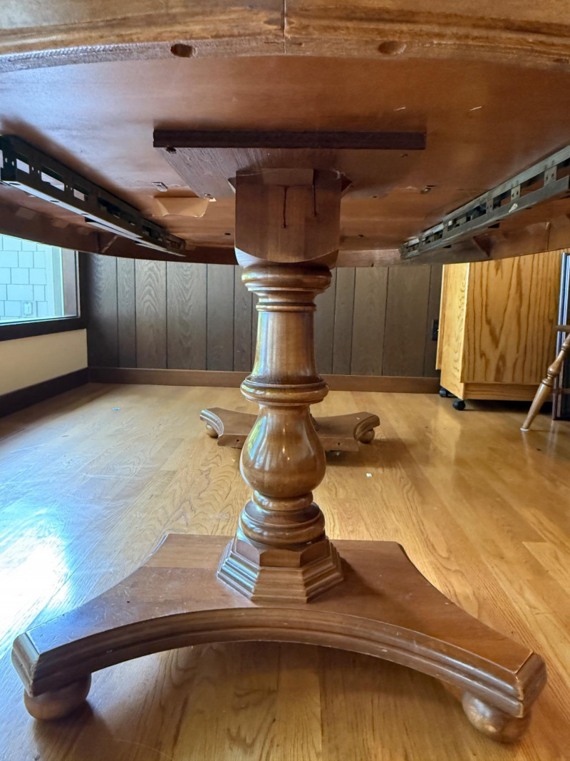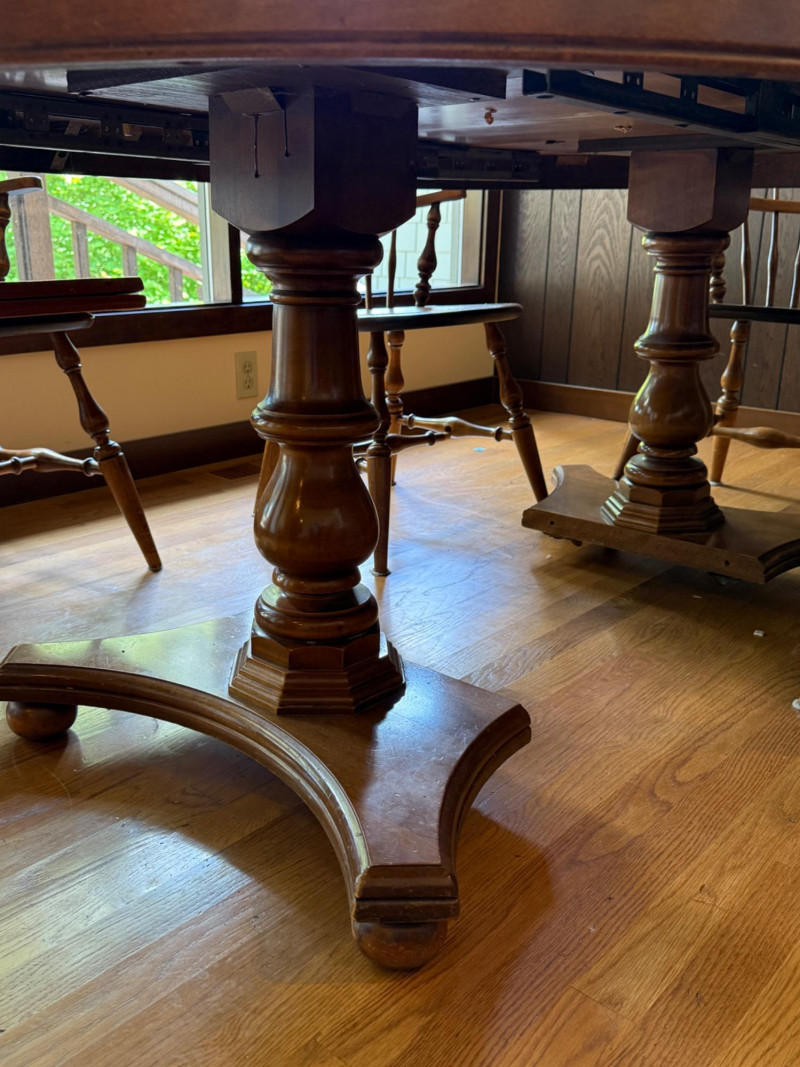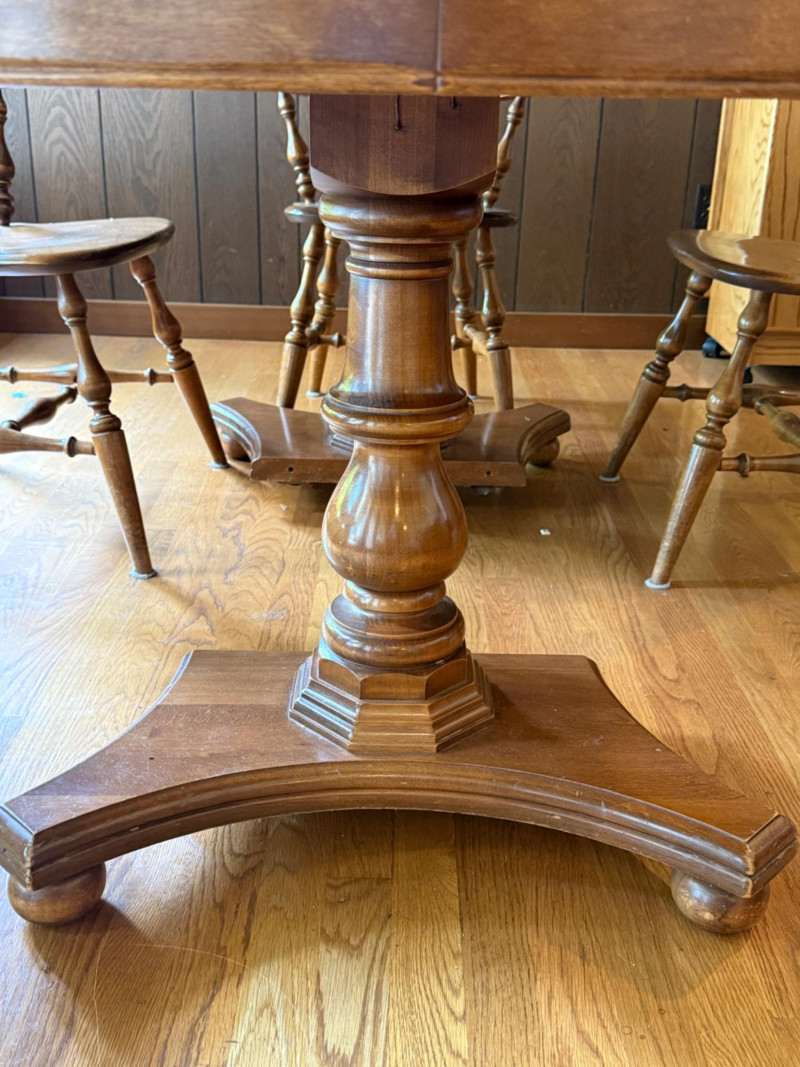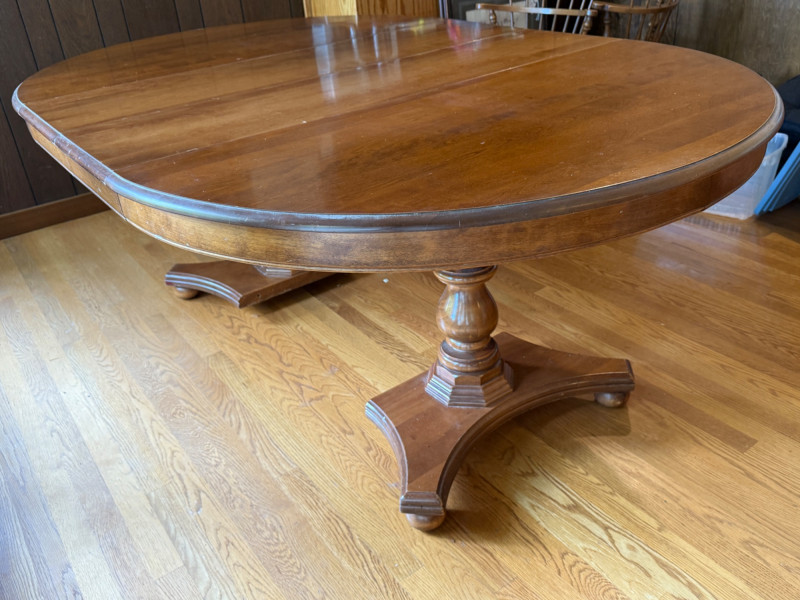 Vintage Oval Cal Shops Maple Dining Table with 2 Leaves and table protector.