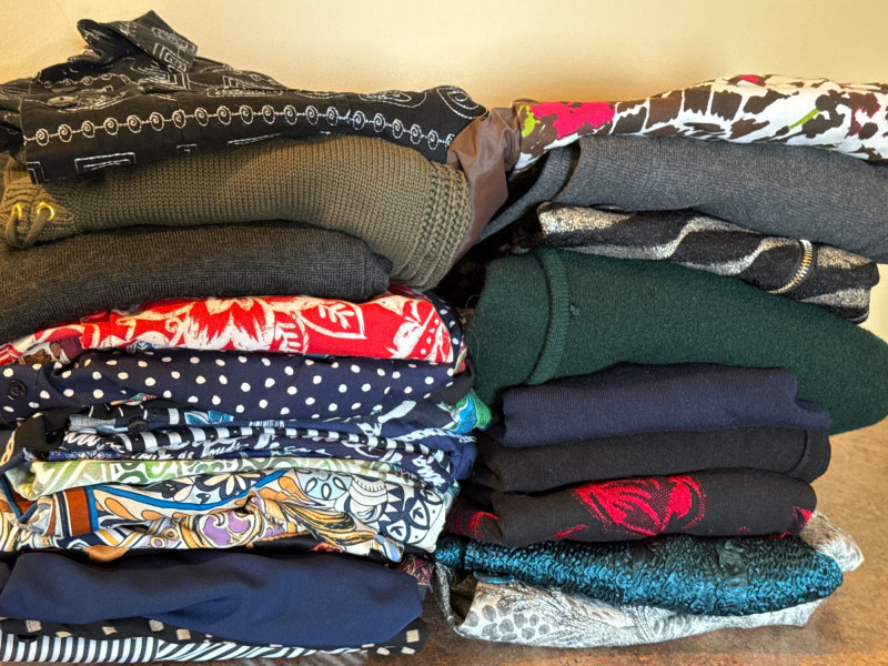 Very Nice Talbots and Chico’s Wardrobe Size Medium and 1, a few 2 and Christopher Banks. Sweaters, Tops and Jackets.