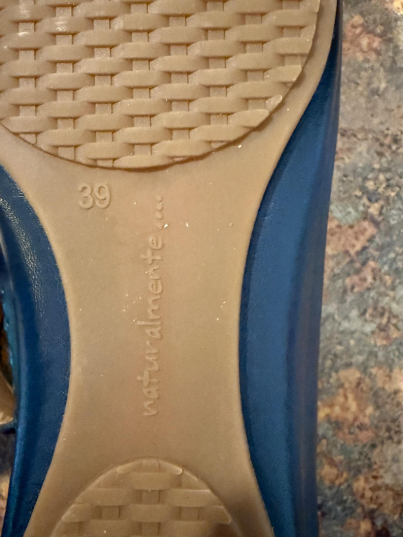 Lot # 158 - NIB Pokolinos Hand Sewn Blue Leather Mary Janes Size 39