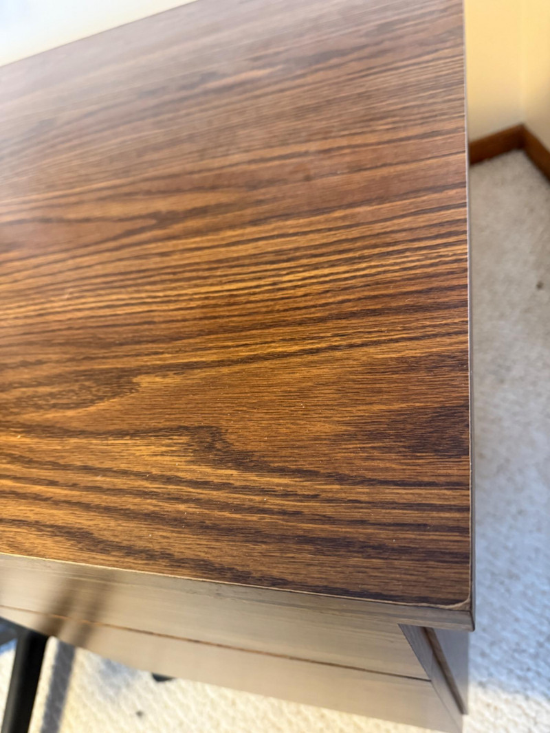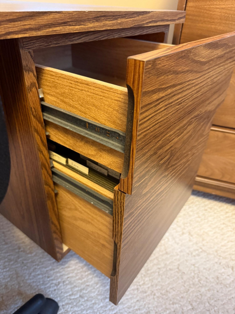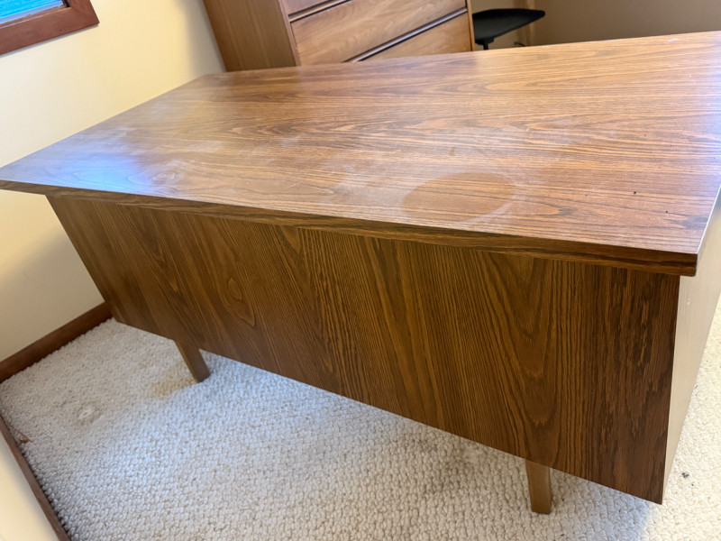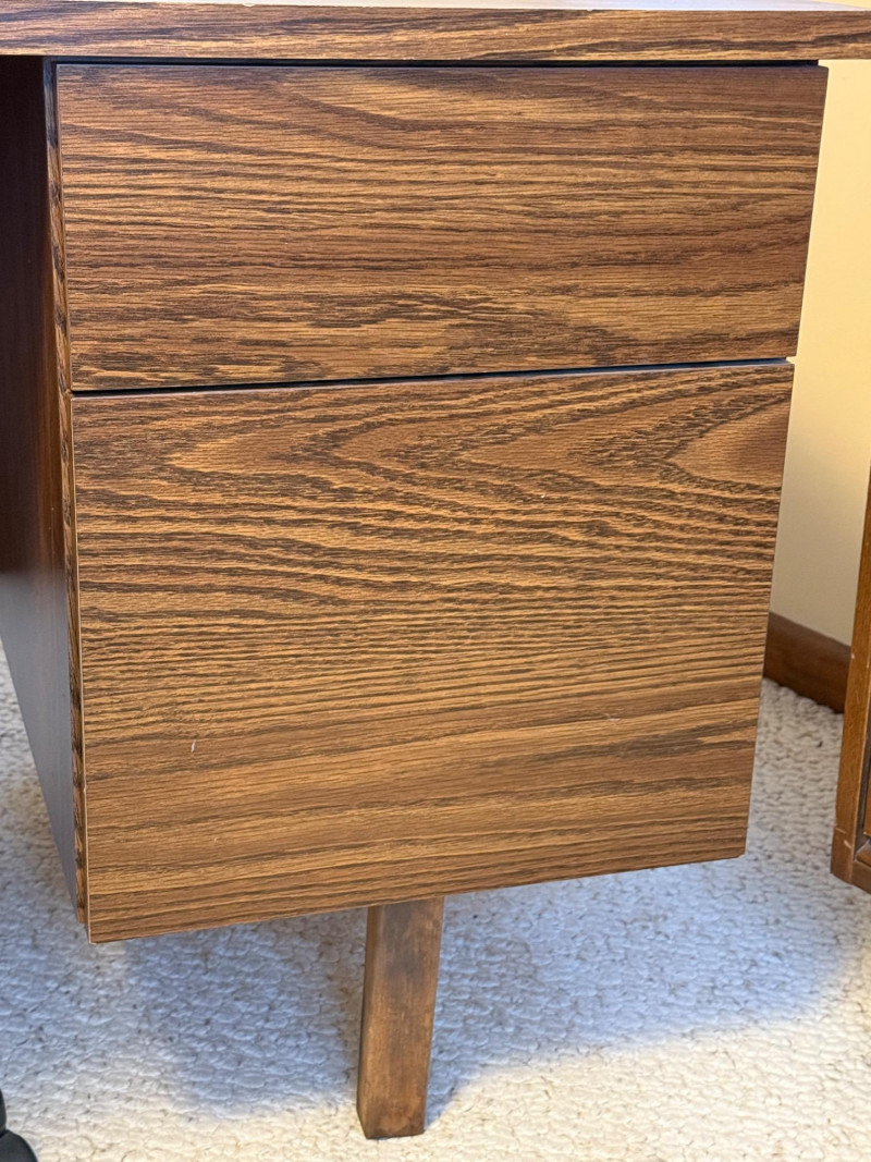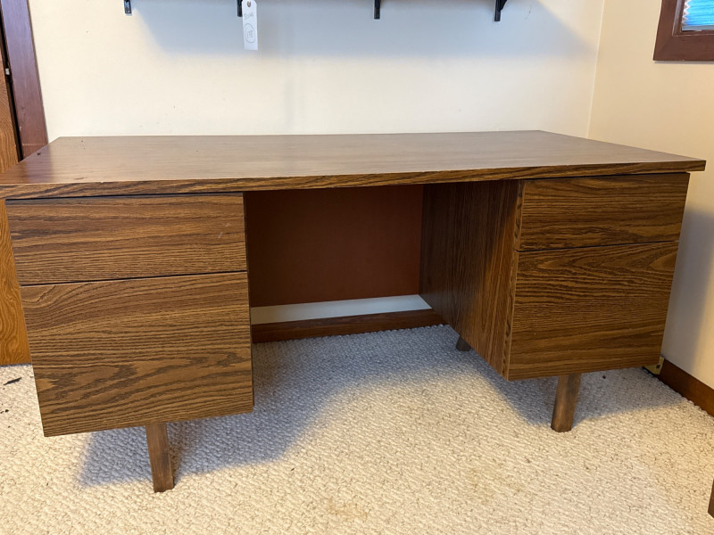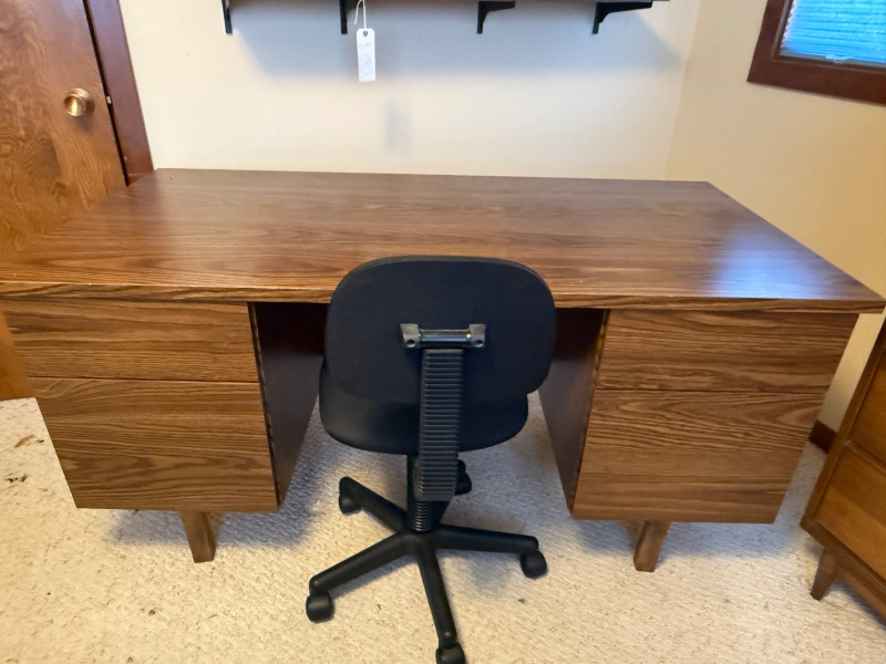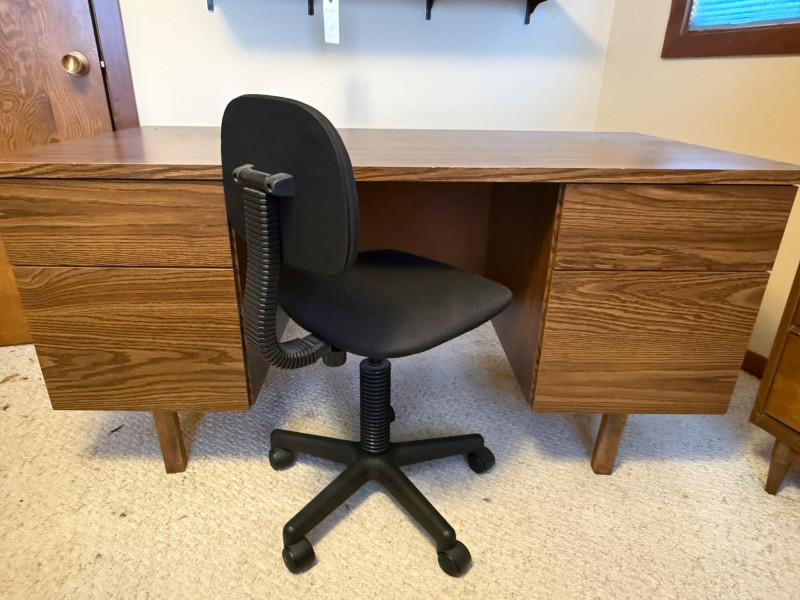 4 Drawer Oak Veneer Executive Desk and Chair 60”x30”x28.5” tall