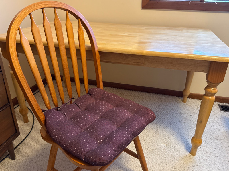 Windsor chair with cushion.