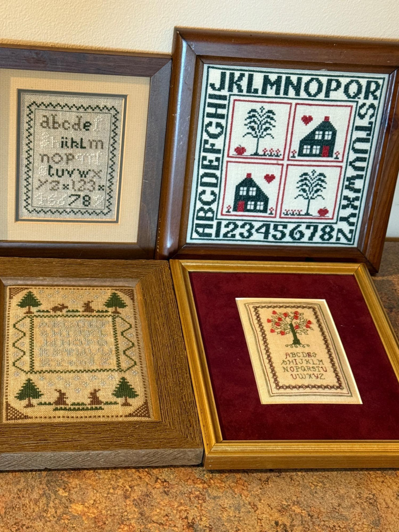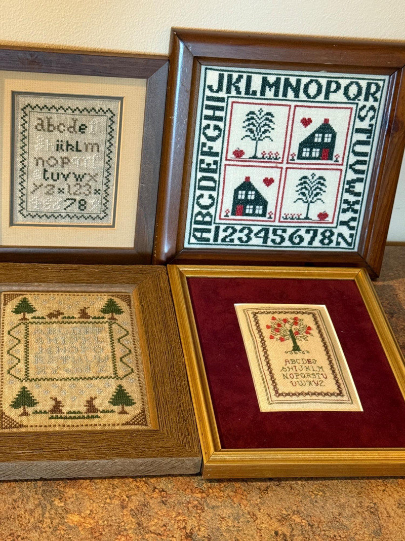 The Embroidery and Needlepoint Alphabet - Four Ways 10“ x 10“, 8“ x 10“, 8.5“ x 10.5“, 7.5“ x 8.75“.