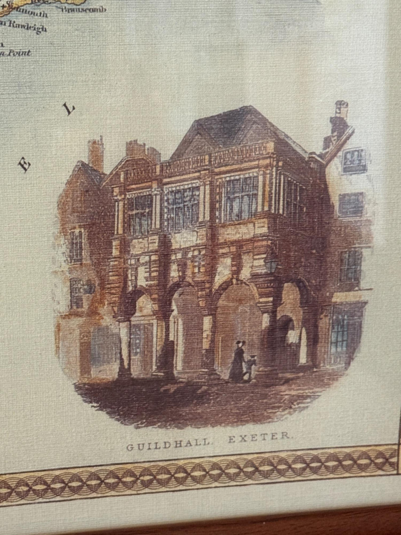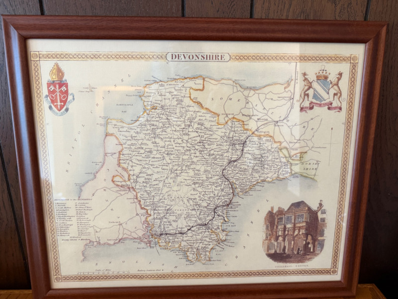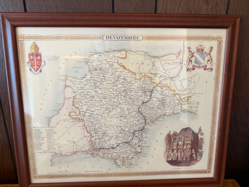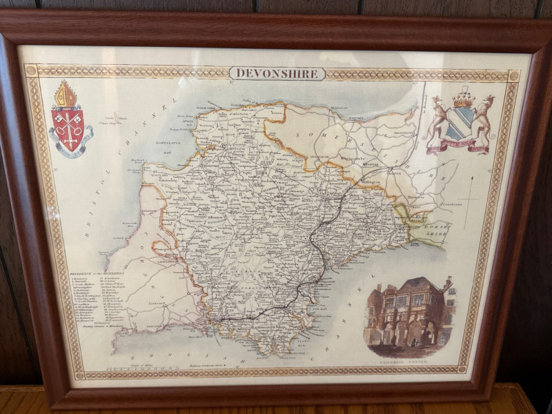 Framed Map of Devonshire England Measures 22“ x 18“ professionally framed in 1995.