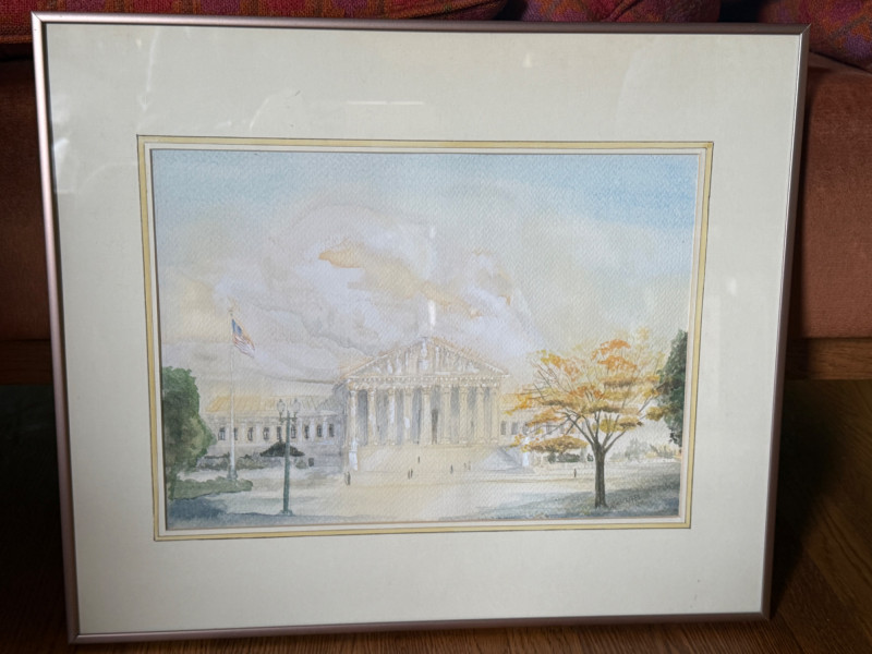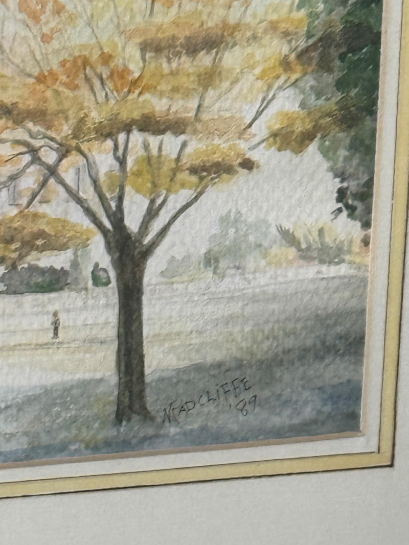 The White House In Fall Watercolor by Radcliffe. Metal framed measures 16”x19”