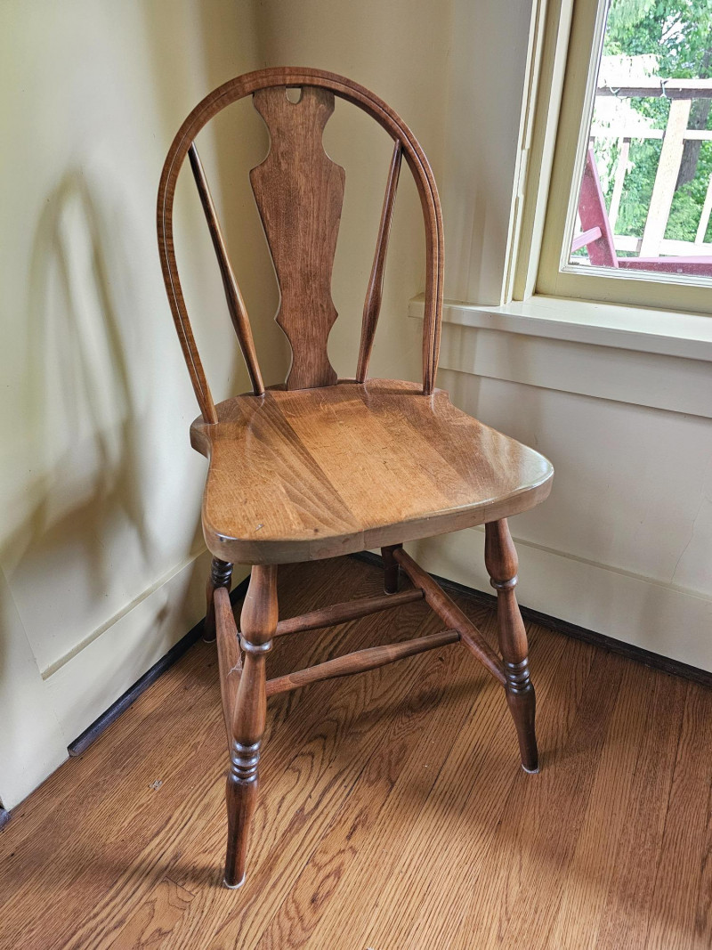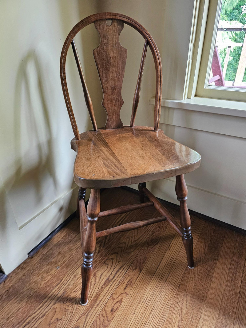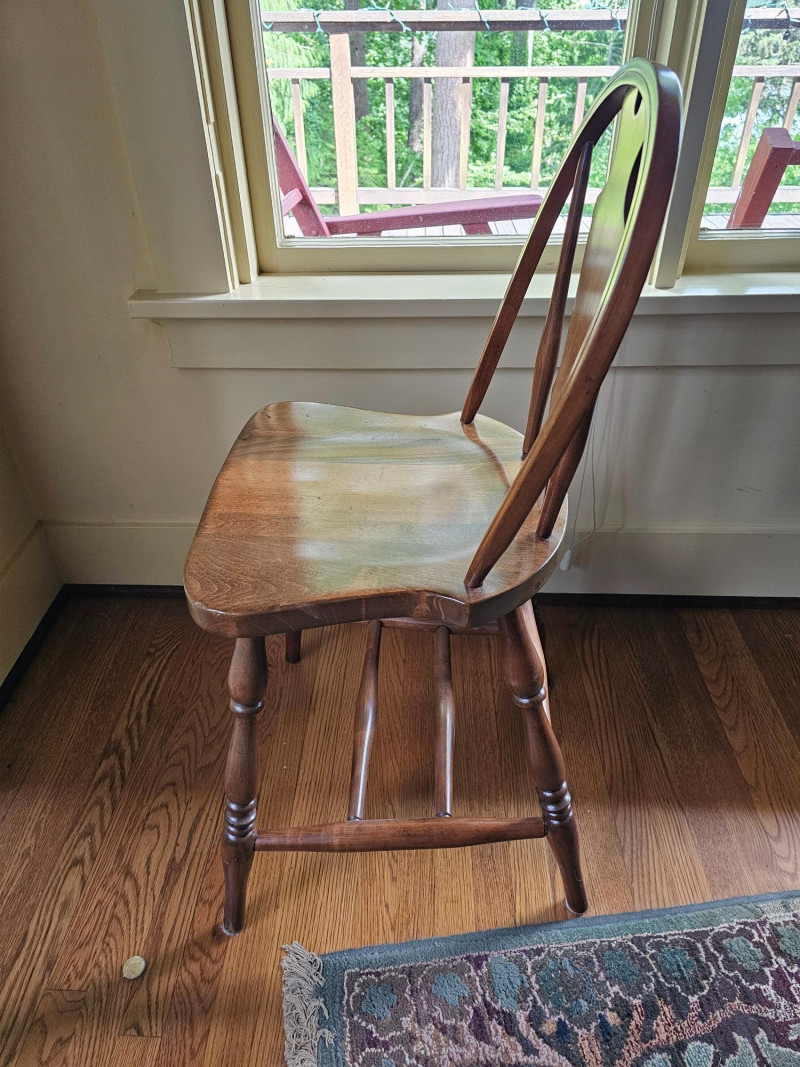 Antique English Windsor Bow-Brace Back Dining Chair Turned legs Solid wood Appears to be in nice condition (see pics for condition) 35"T x 16"W x 17.5"D