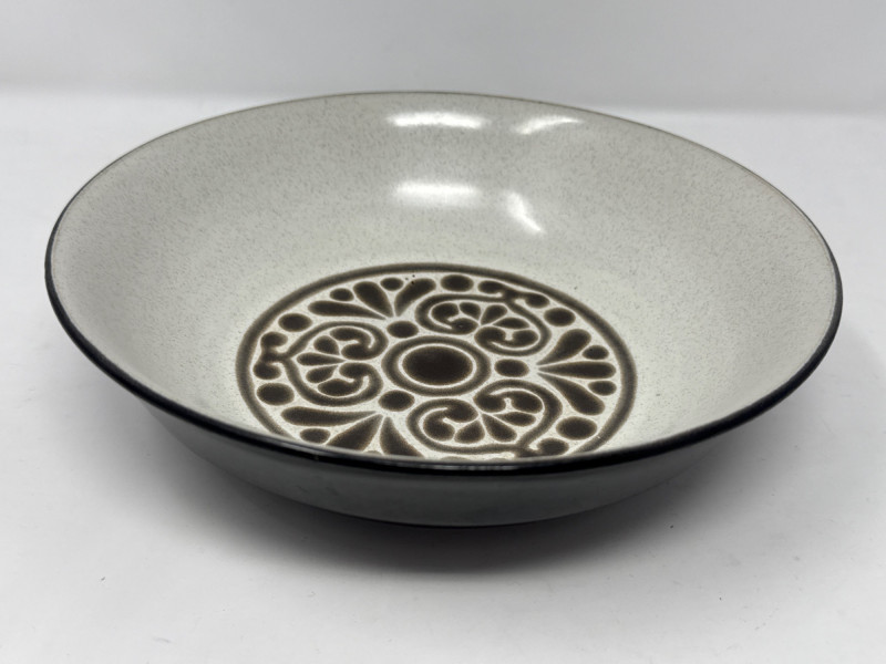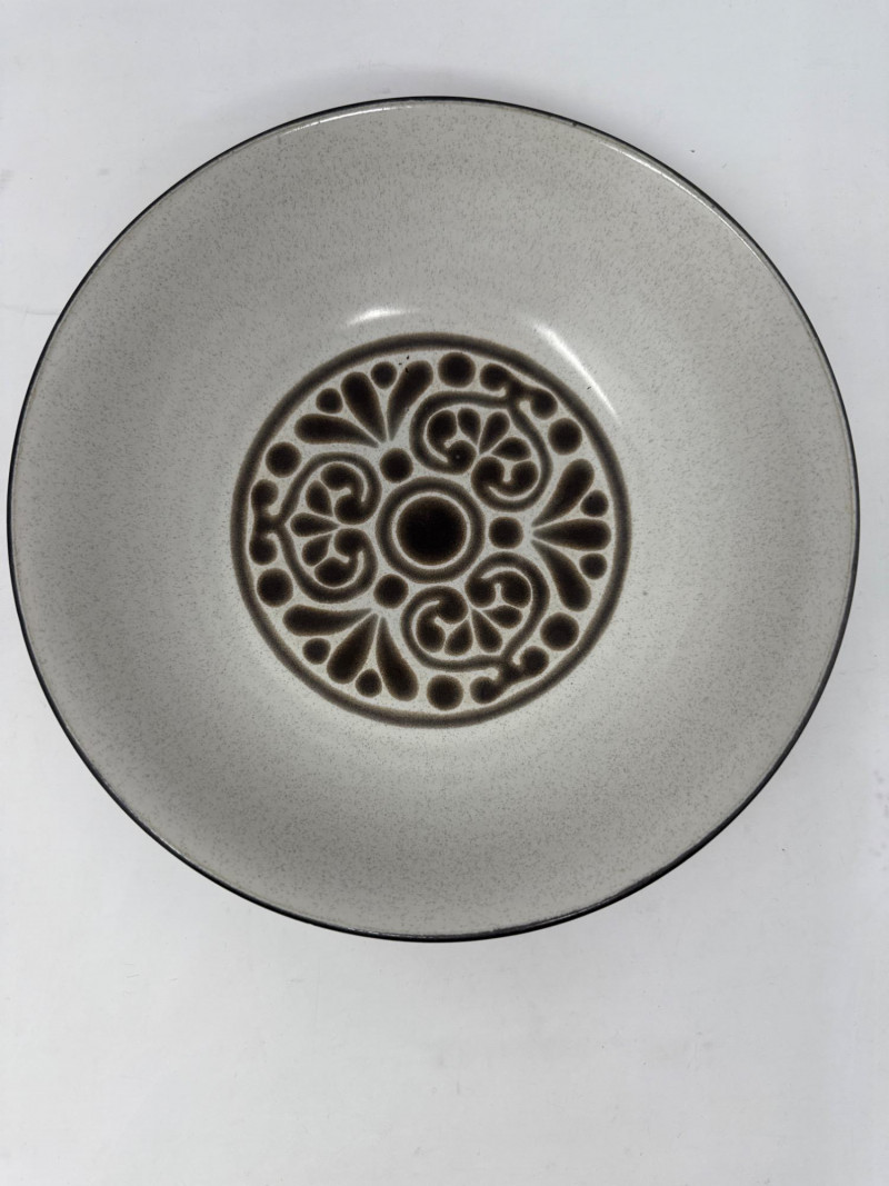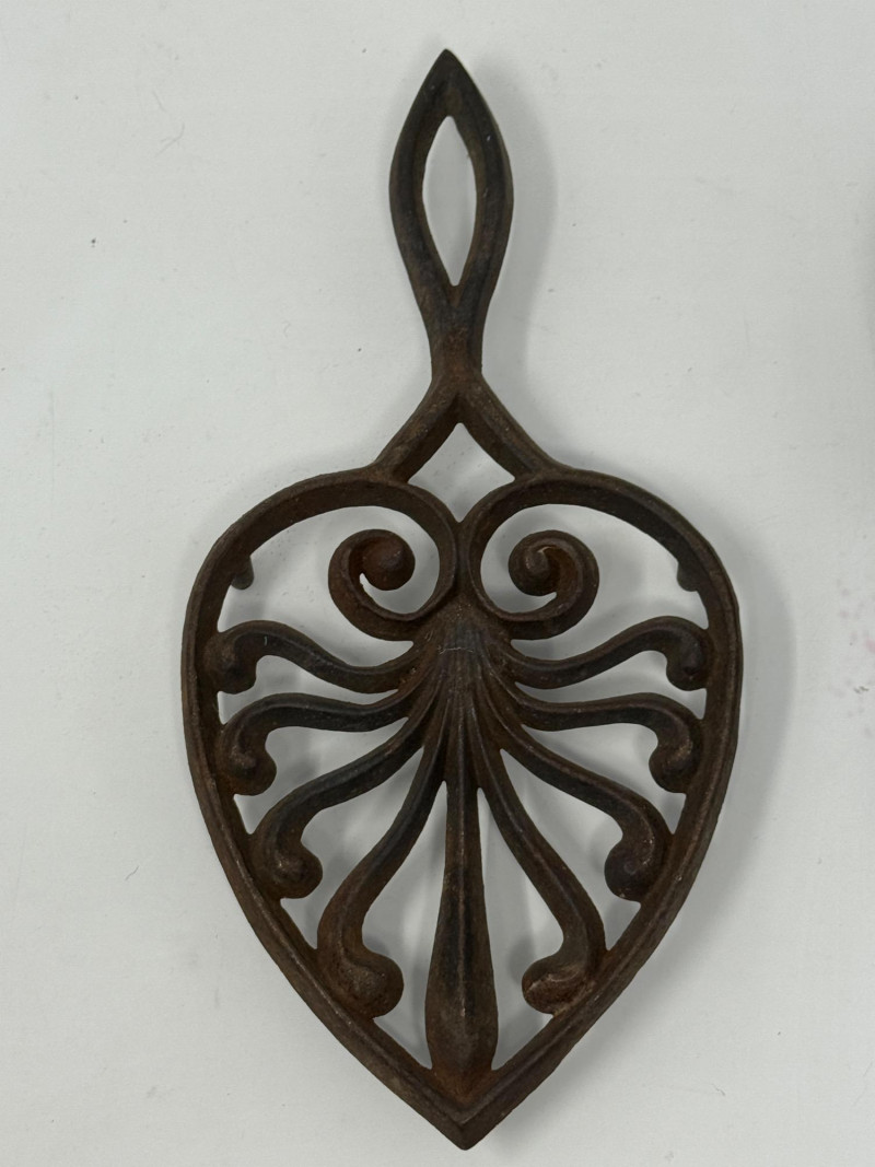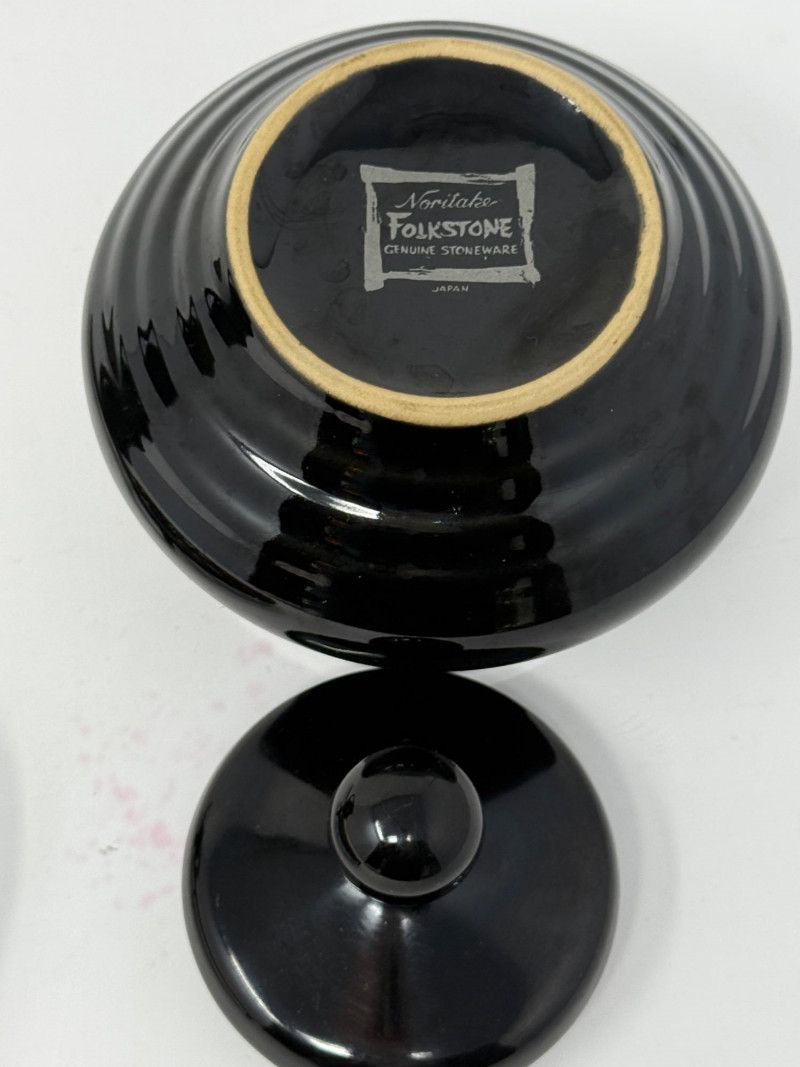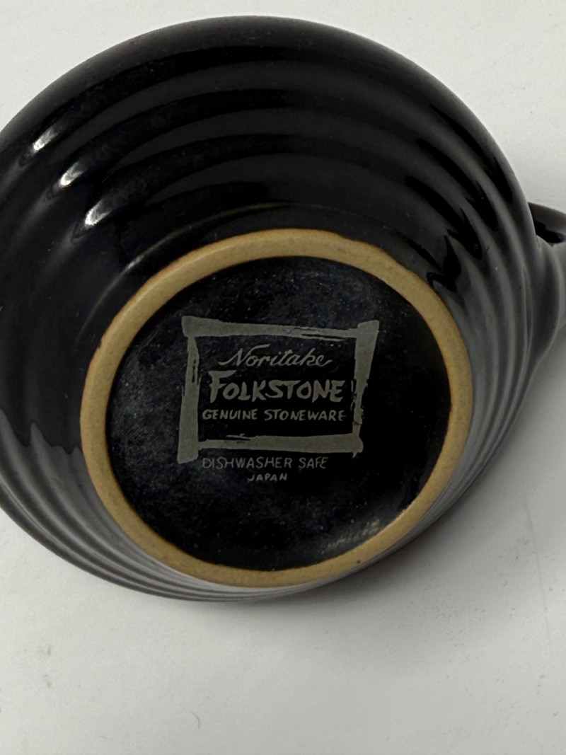 Noritake Folkstone Original Stoneware Cream & Sugar Set and 8” bowl. Vintage Cast Iron Heart Trivet