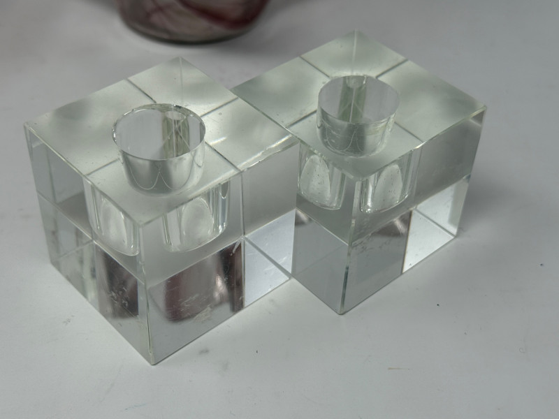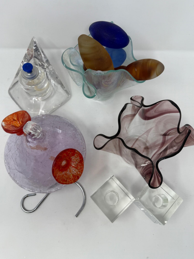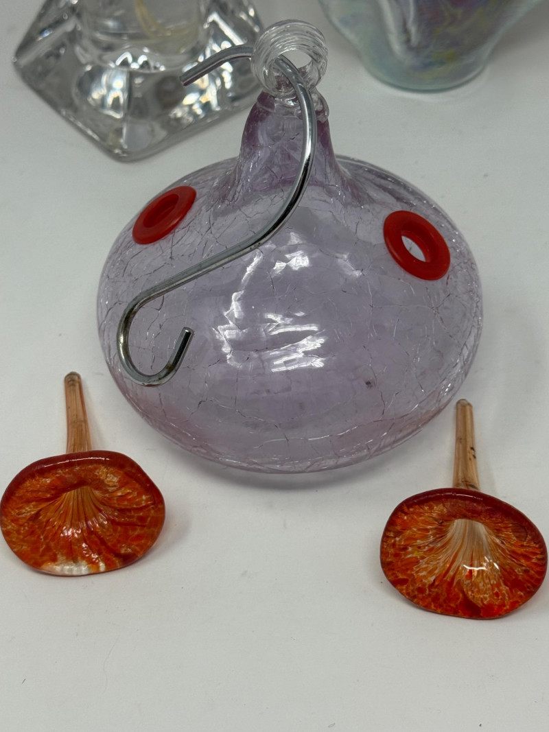 Lot # 204 - Blown Glass Hummingbird Feeder - Candle Holders
