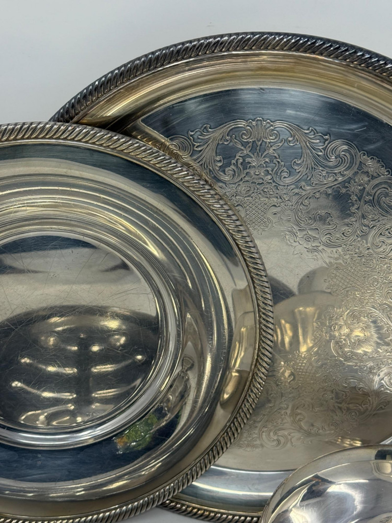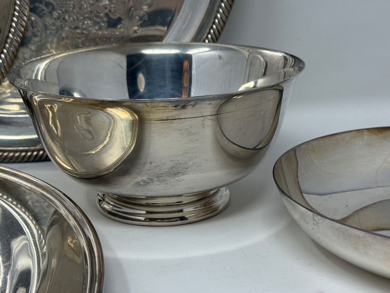 5 Silver Plate Serving Pieces Reed and Barton bowls International Silver Co Castleton 12” and 10” platters WM Rodgers Roast Plate