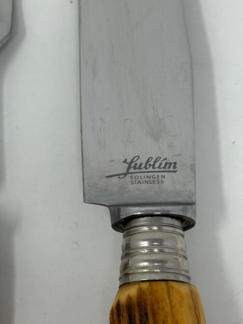 Fublim Solingen Stainless Carving Knife 12.75” Carving fork stamped Rostfrei 11”