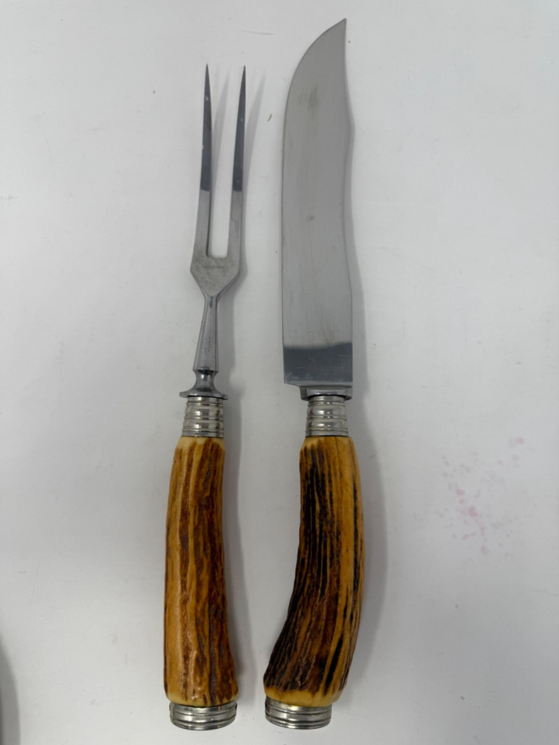Lot # 212 - Fublim Rostfrei Antler Handle Carving Set