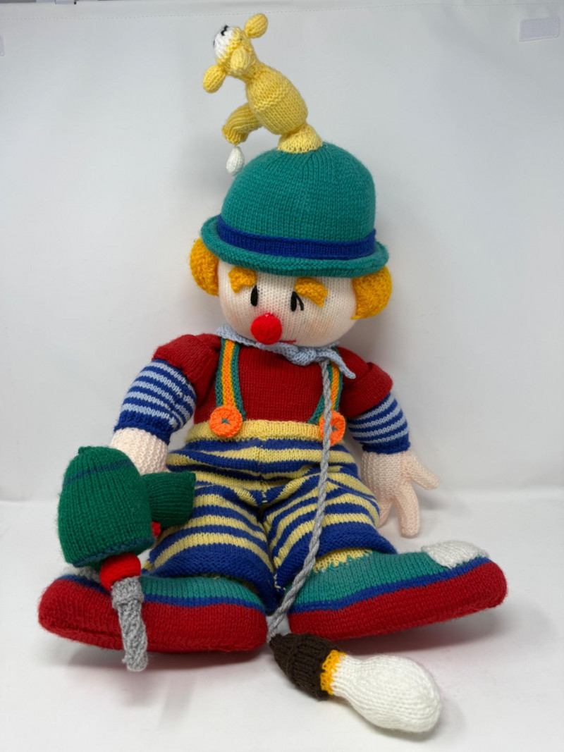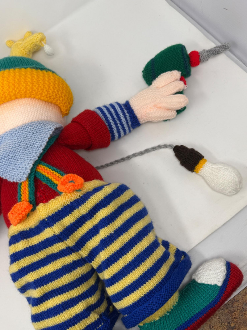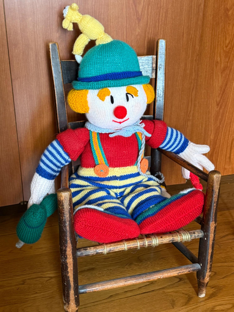Lot # 213 - Knitted Clown with Tools & Primitive Rocking Chair
