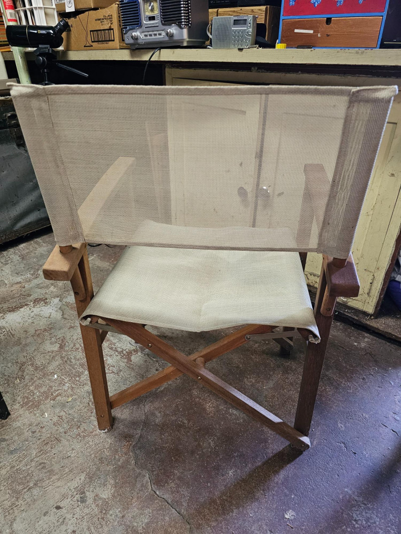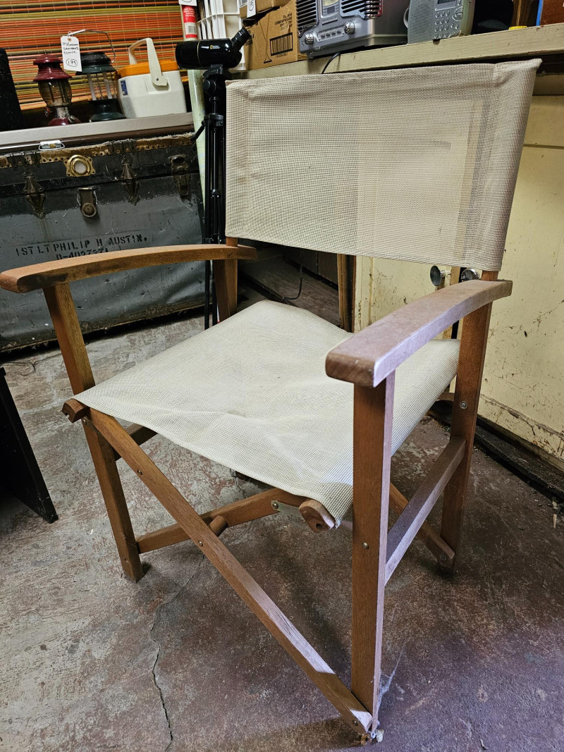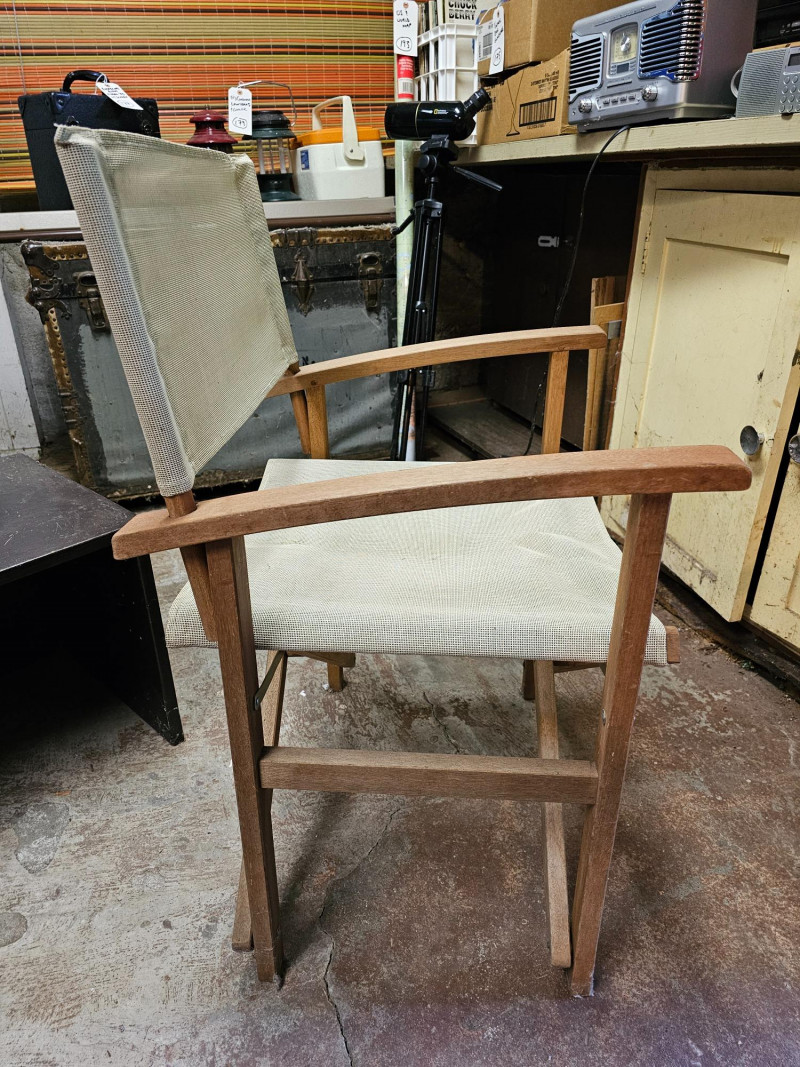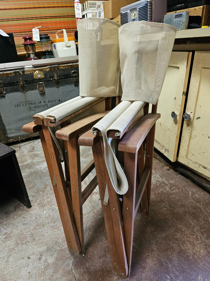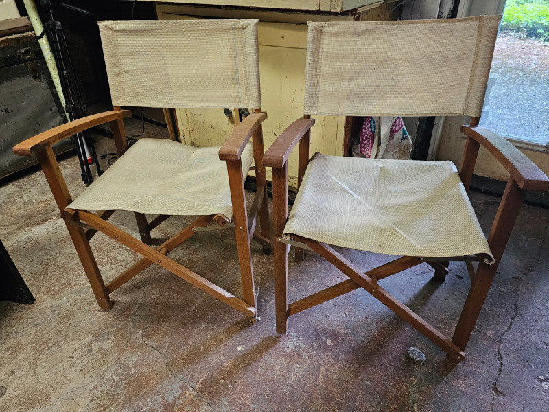 Pair Of Vintage Foldable Directors Chair With Mesh Fabric Solid wood frame (maybe teak?)