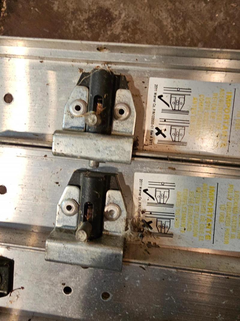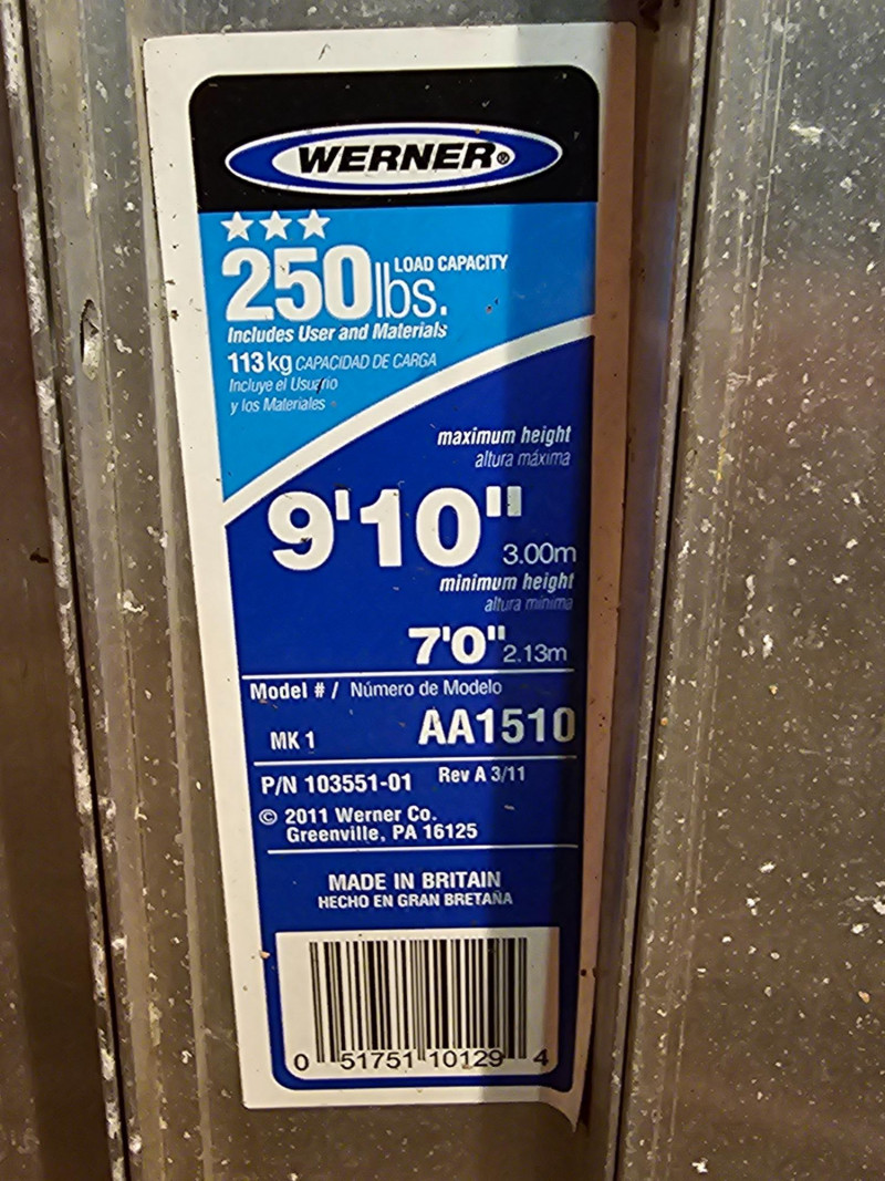 Werner Universal Aluminum Sliding Attic Stairs Werner Model # 7' minimum to 9'10" maximum length 12" wide Rough opening 18" x 24" 250lb load capacity Appear in used, working condition