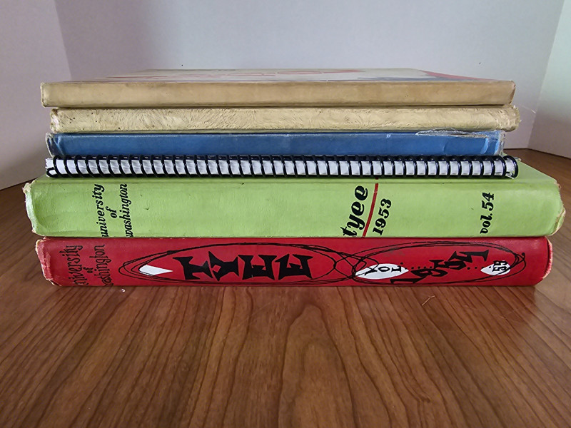 Vintage Garfield High School & Univeristy Of Washington Yearbooks Garfield High School: 1945, 1946, 1948 (includes 1988 spiral-bound 50th Reunion Memory Book) University Of Washington: 1953 & 1954 These vintage yearbooks include some authentic scribbles, drawings, and personal messages from the time period! 6 books in total!