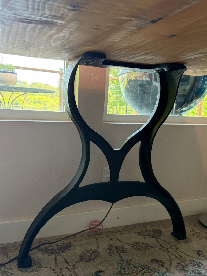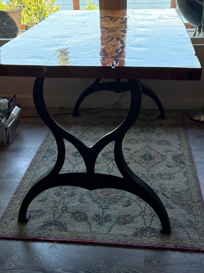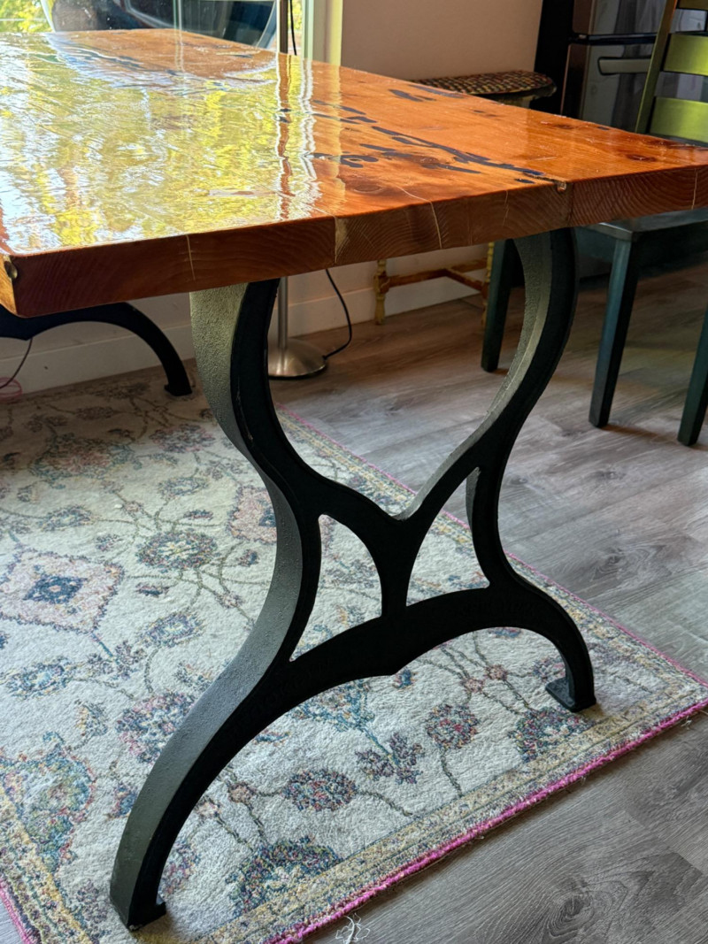 Custom Made Blue Epoxy and Wood Table With cast iron legs Marked Brooklyn New York.