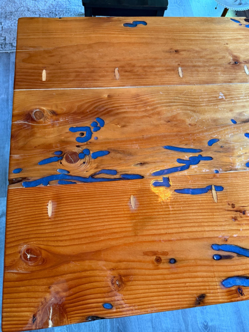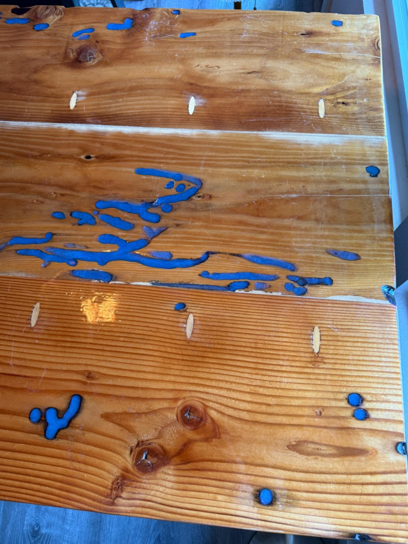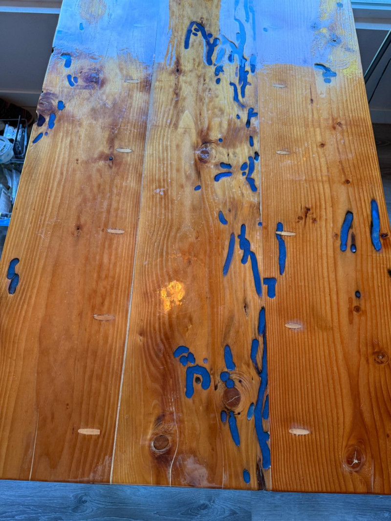 Lot # 1 - Custom Made Blue Epoxy and Wood Table