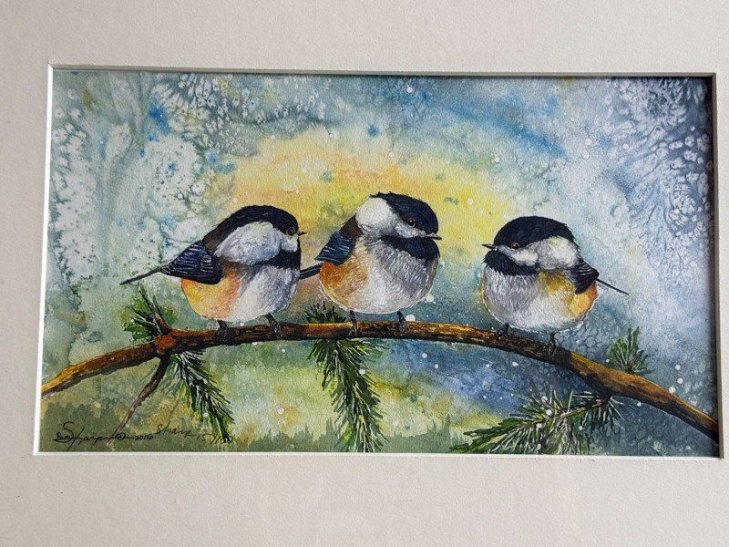 Lot # 25 - Winter Chickadees by Pam Sharp Signed and Numbered