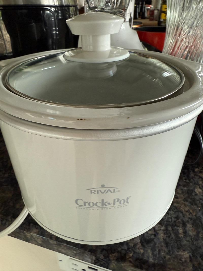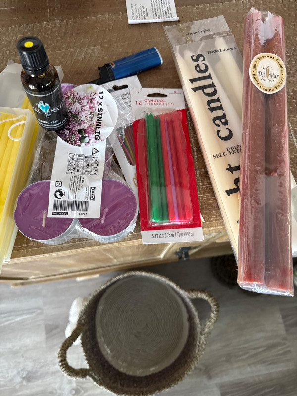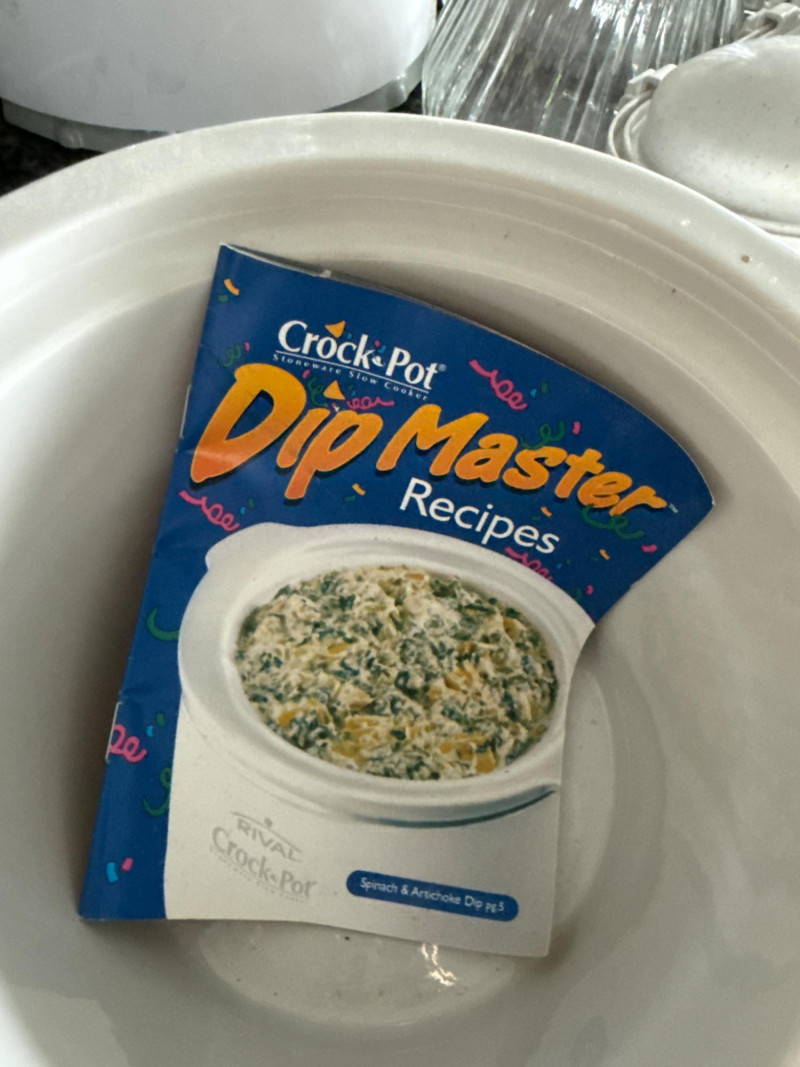 Party In A Basket Candles Aromatherapy Party napkins and coasters Drink Dispenser 2 qt(?) Crock Pot with removable crock. Works. Basket is approximately 15”x12” not including handles.