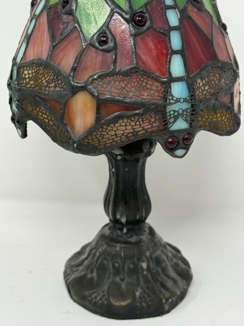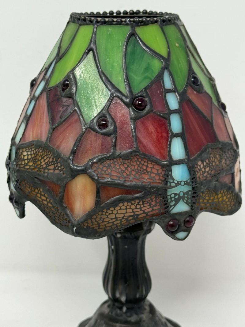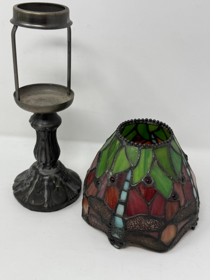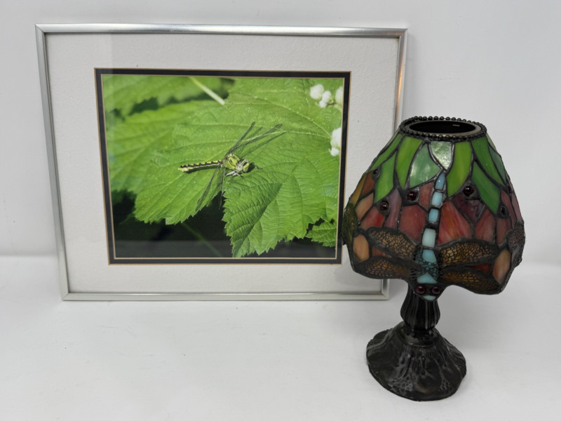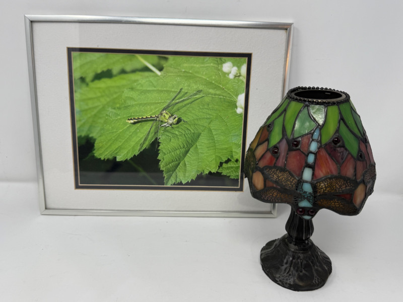 Lot # 41 - Dragonfly Tiffany Style Candle Lamp & Framed Photo