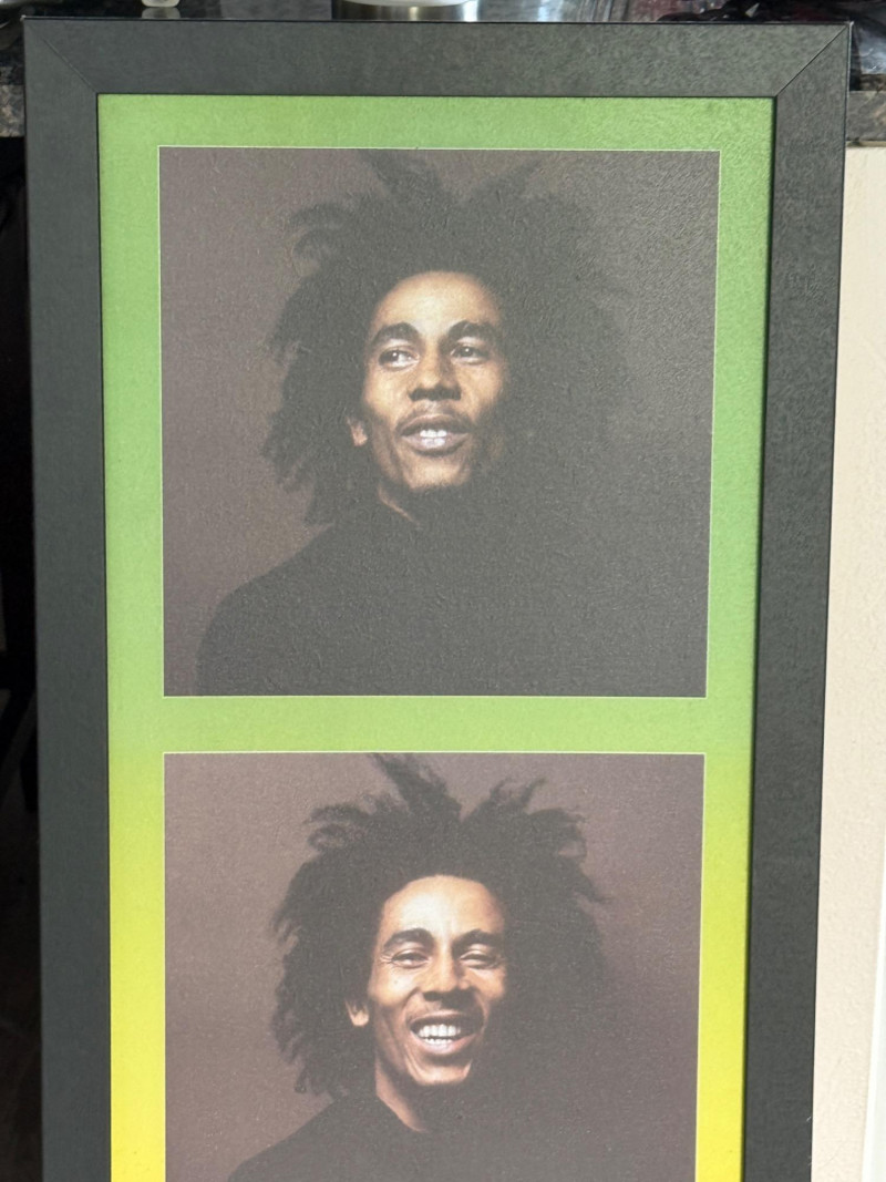 Three Faces of Bob Marley Photographs with a textured surface.