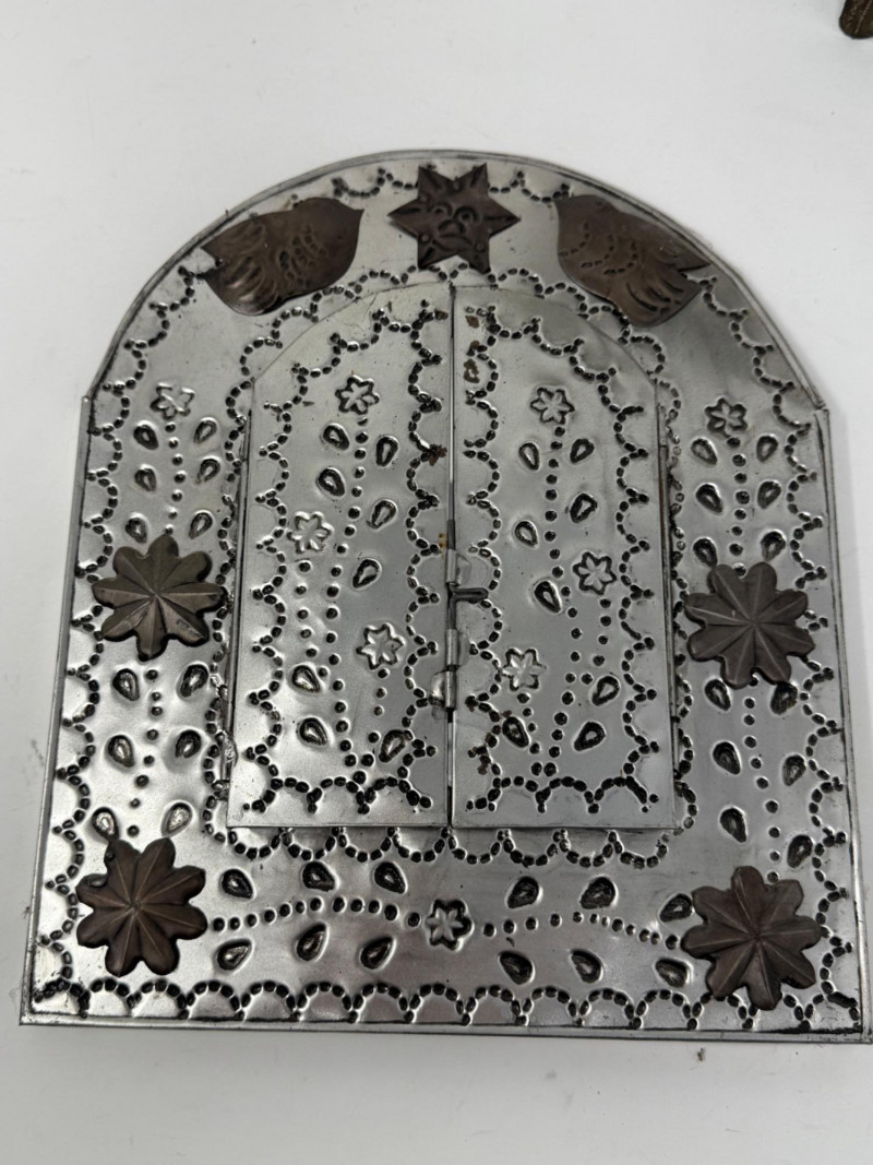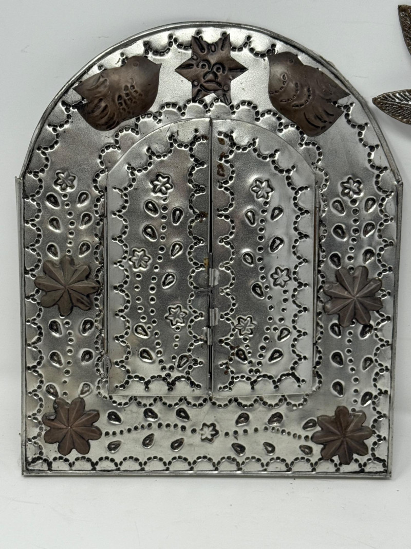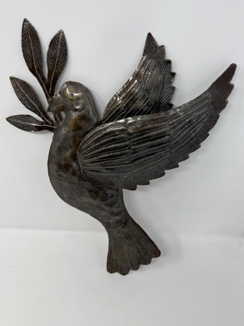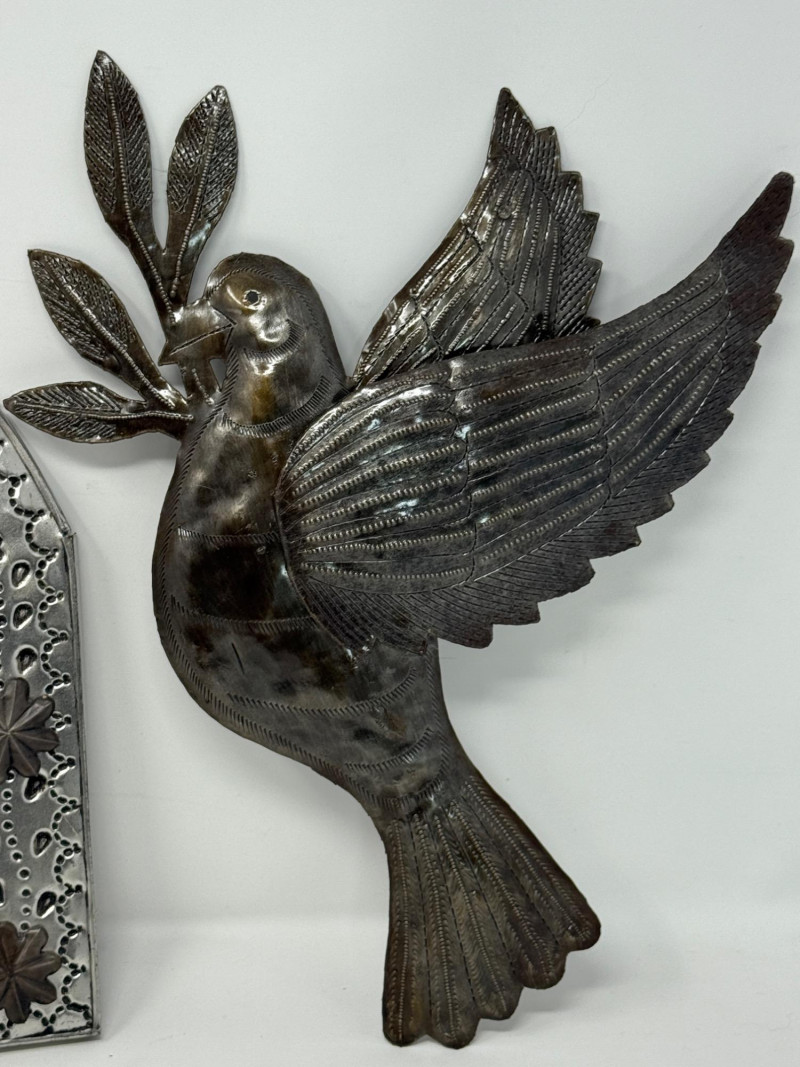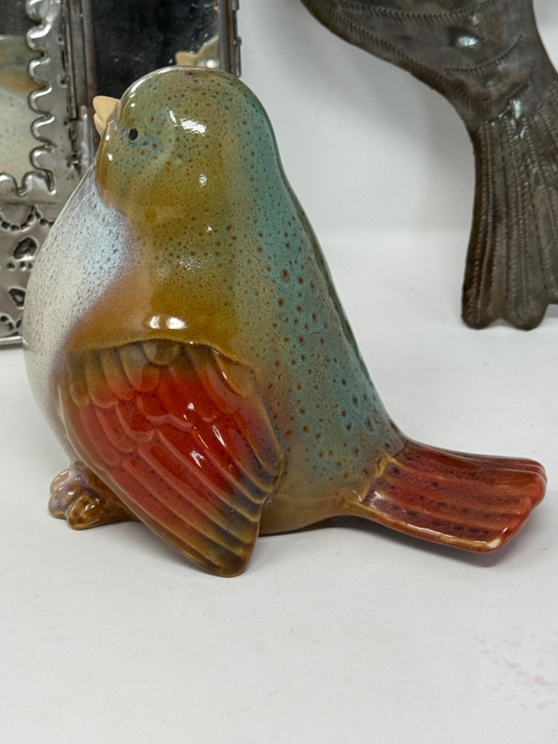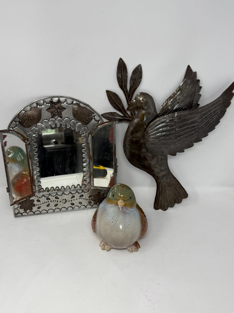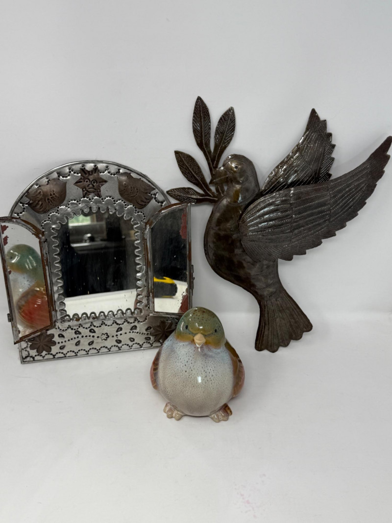 Metal Wall Mirror is 8.75” Dove 11”x13” Glazed Pottery Bird is 7”x6”