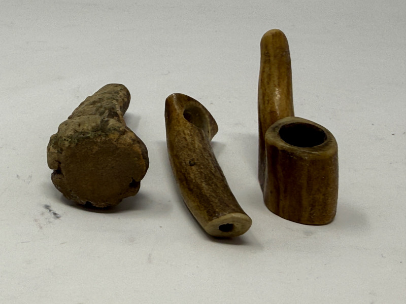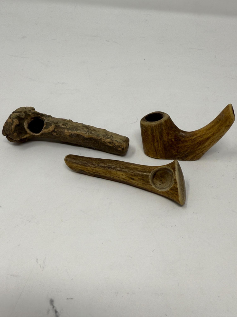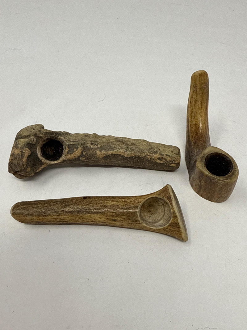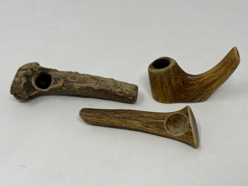 Lot # 51 - 3 Pocket Size Hand Crafted Antler Pipes