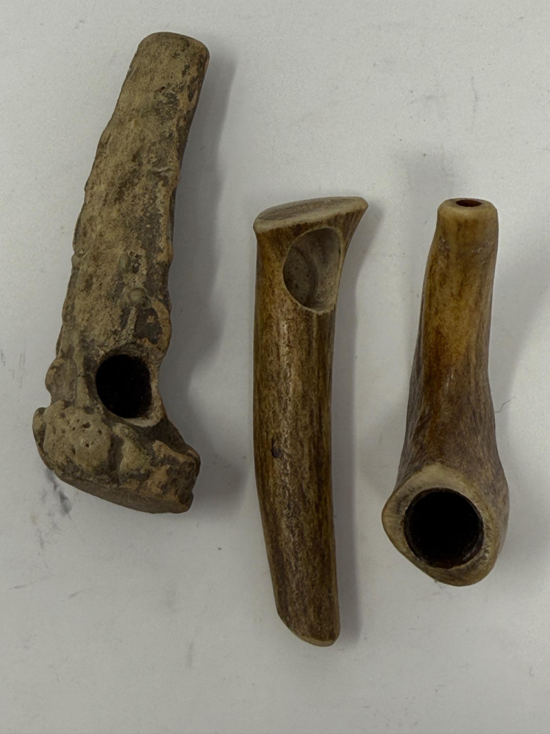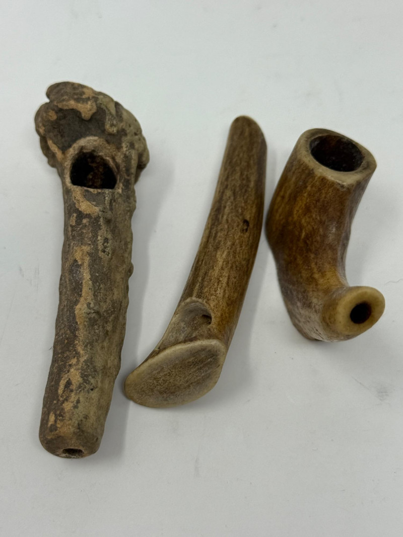 3 Pocket Size Hand Crafted Antler Pipes Each 2.5”-3” long.