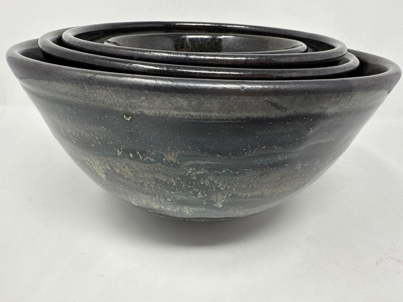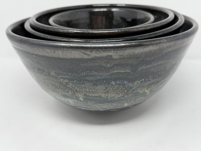 Lot # 58 - Set of 4 Hand Crafted Glazed Pottery Nesting Bowls by Barb Childs