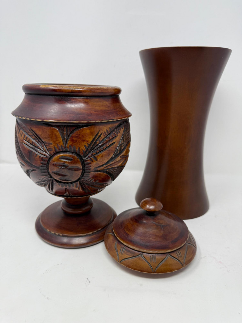 Lot # 60 - Hand Carved Wood Urn & Modern Wood Vessel