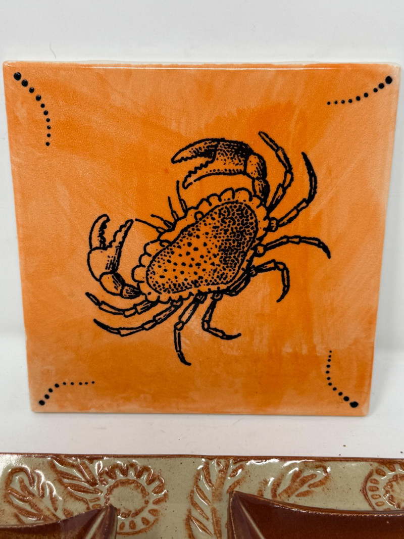 Lot # 68 - Glazed Pottery Tray & Small Dishes with Crab Trivet