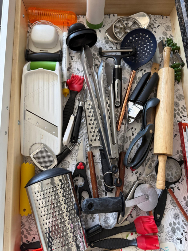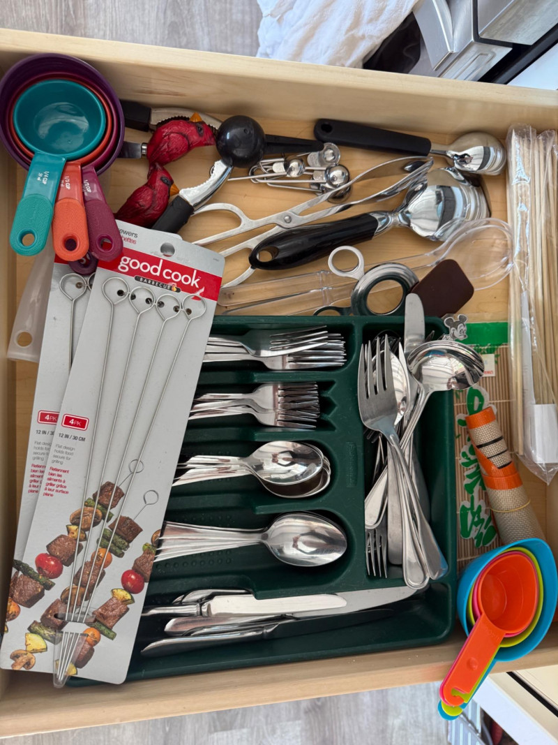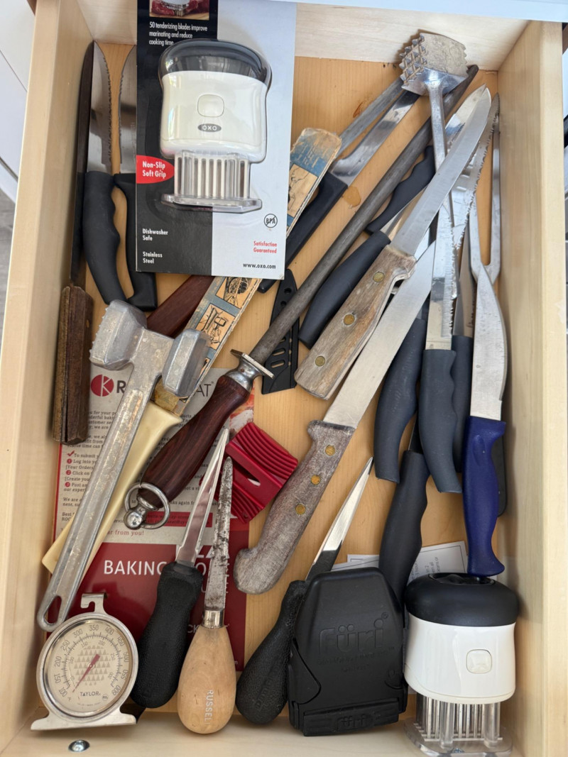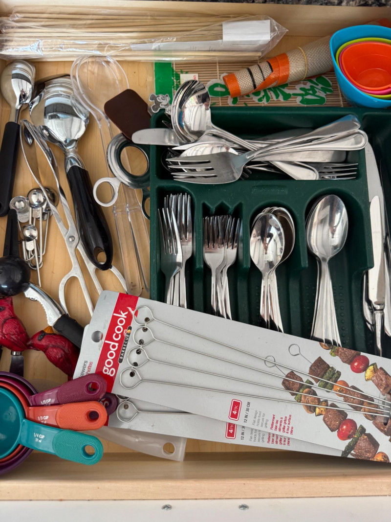 The Kitchen Drawers Flatware, knives, measuring, slicing grating, stirring, tenderizing, and all utensils in between