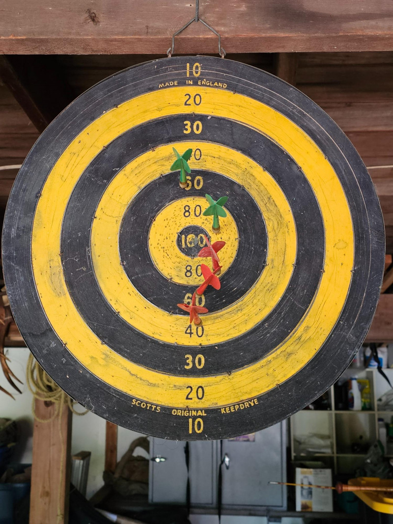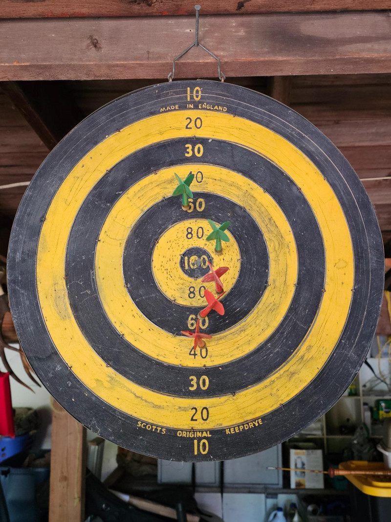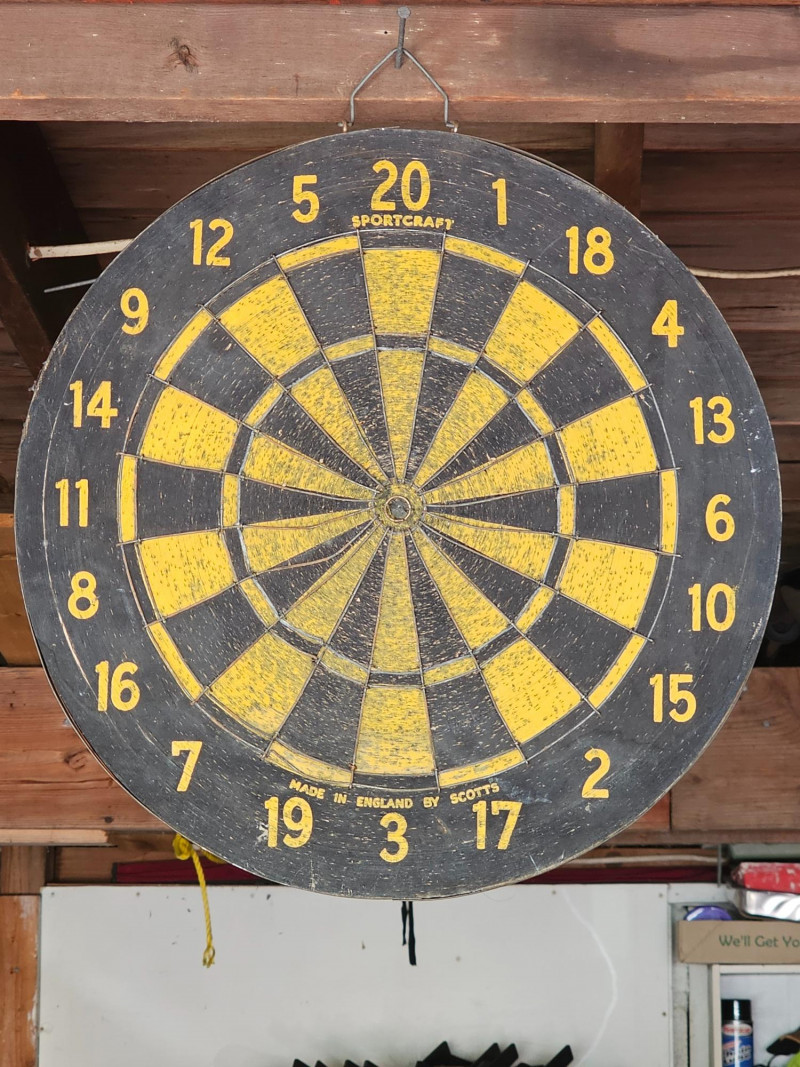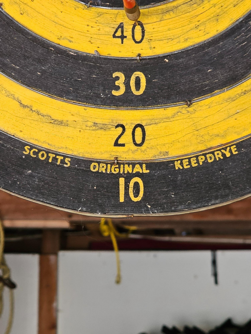 Lot # 73 - Vintage Scotts Original Keepdrye Dartboard & 5 Darts