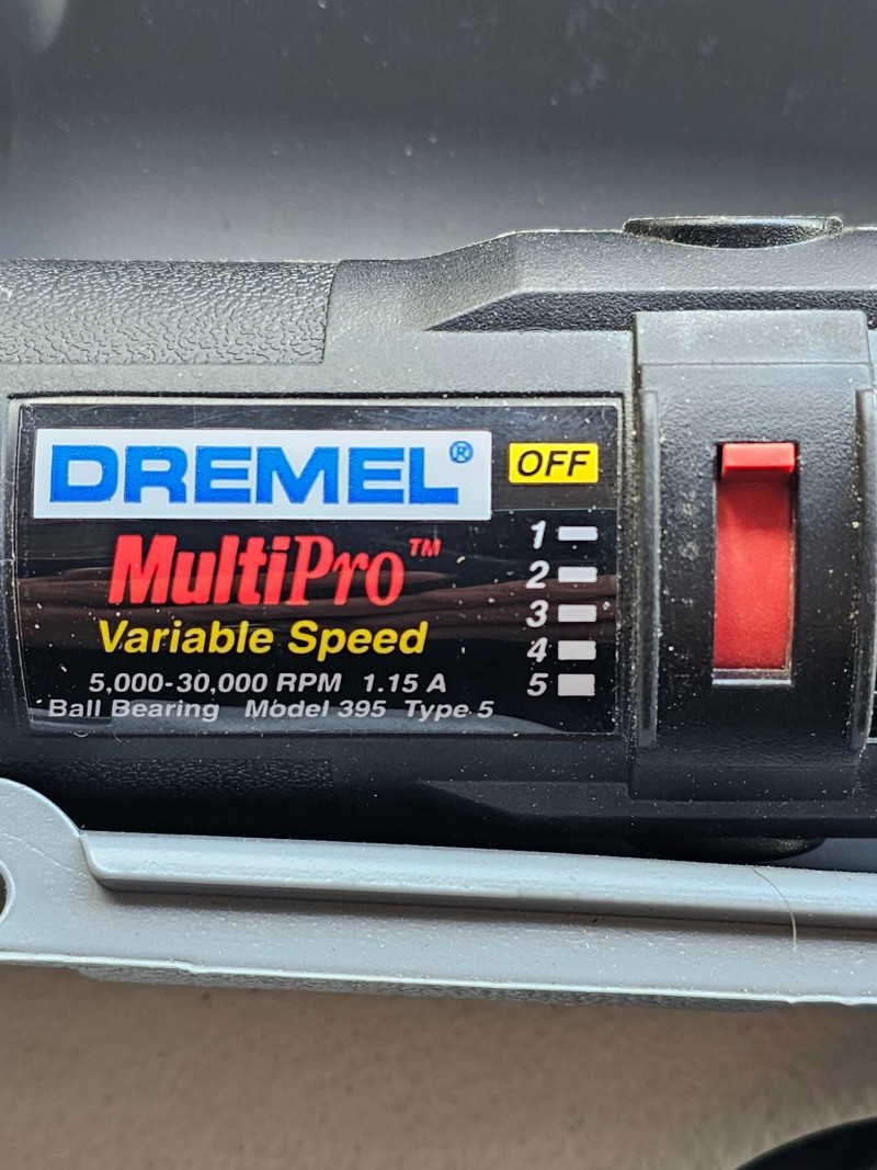 Dremel MultiPro Variable Speed Corded Rotary Tool Kit #1 Dremel MultiPro Model 395 5k - 30k RPM 1.15amp Includes carry case, 15 tips, cutting discs, and extra sanding drums Tested - Works!