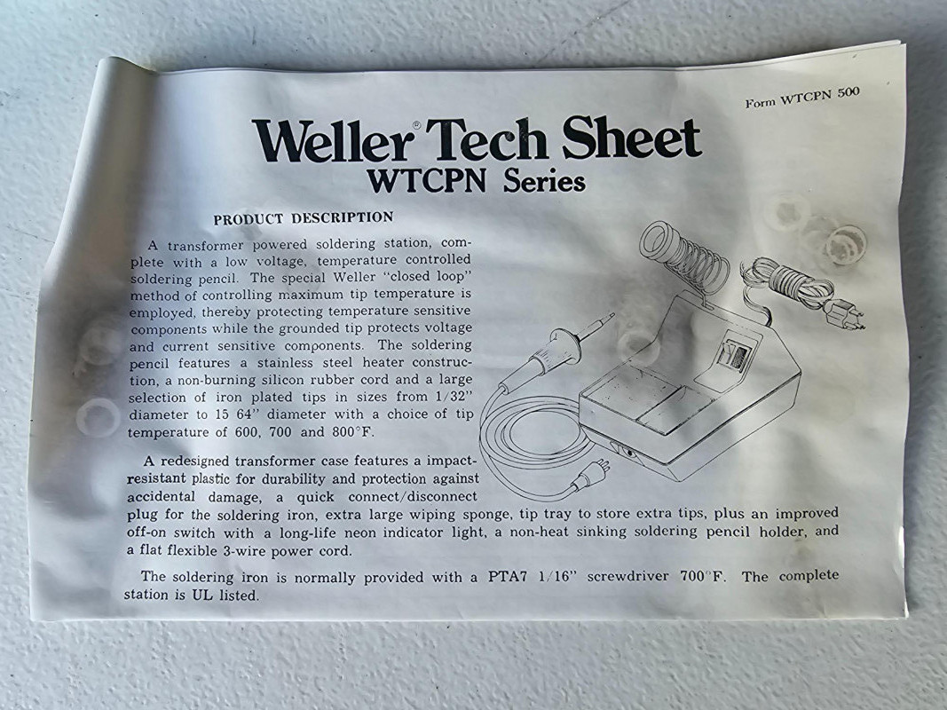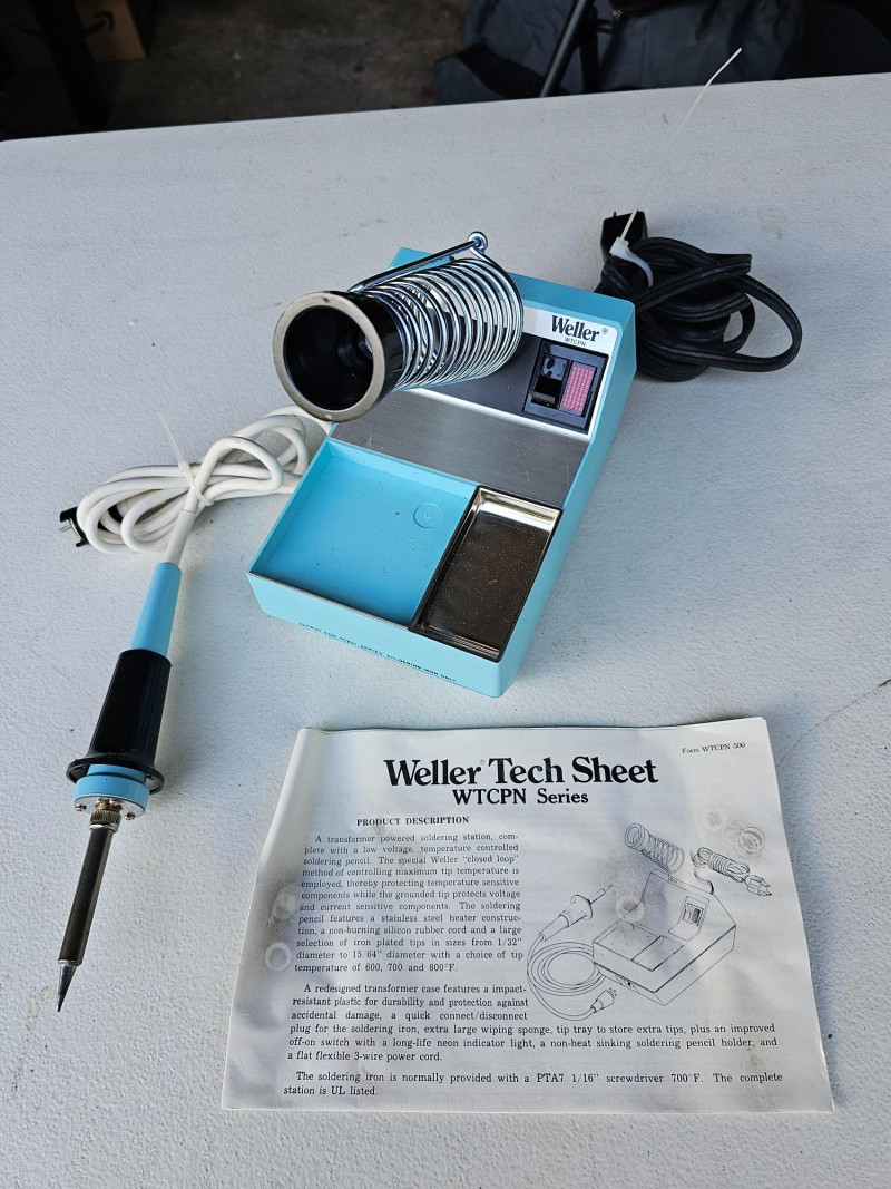 Weller Soldering Station Weller Catalog #WTCPN Appears to be new & never used in original box Includes stand, spring, soldering iron and instruction manual
