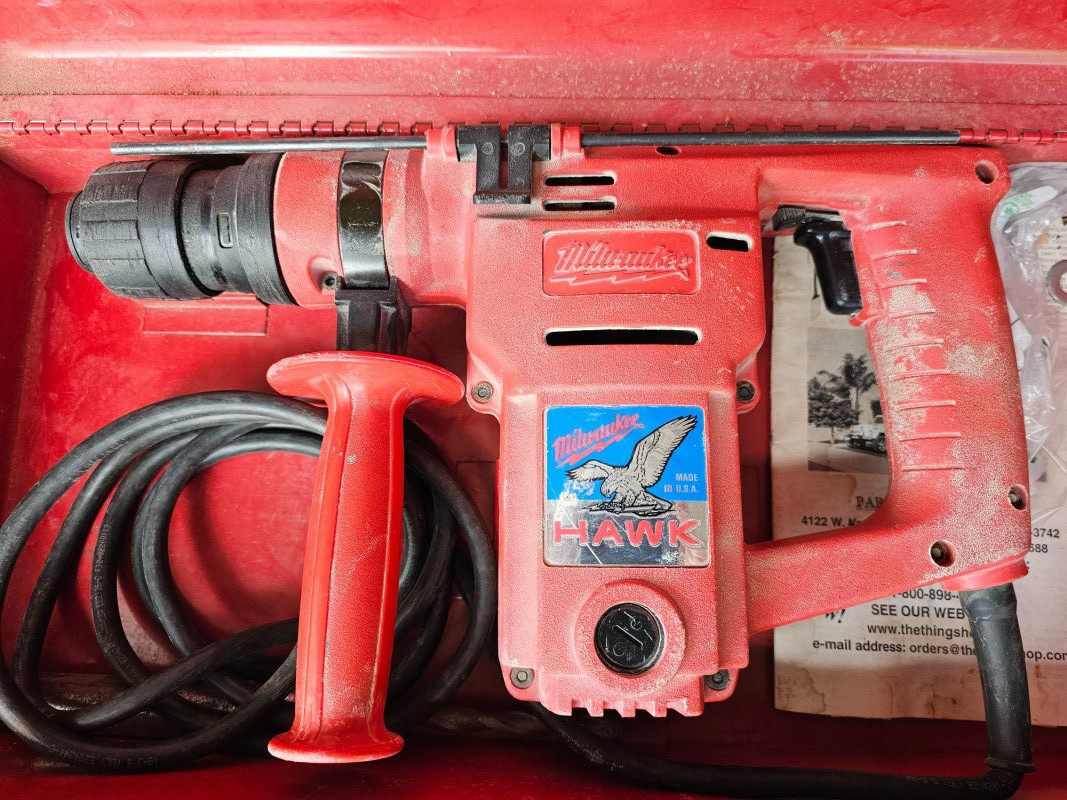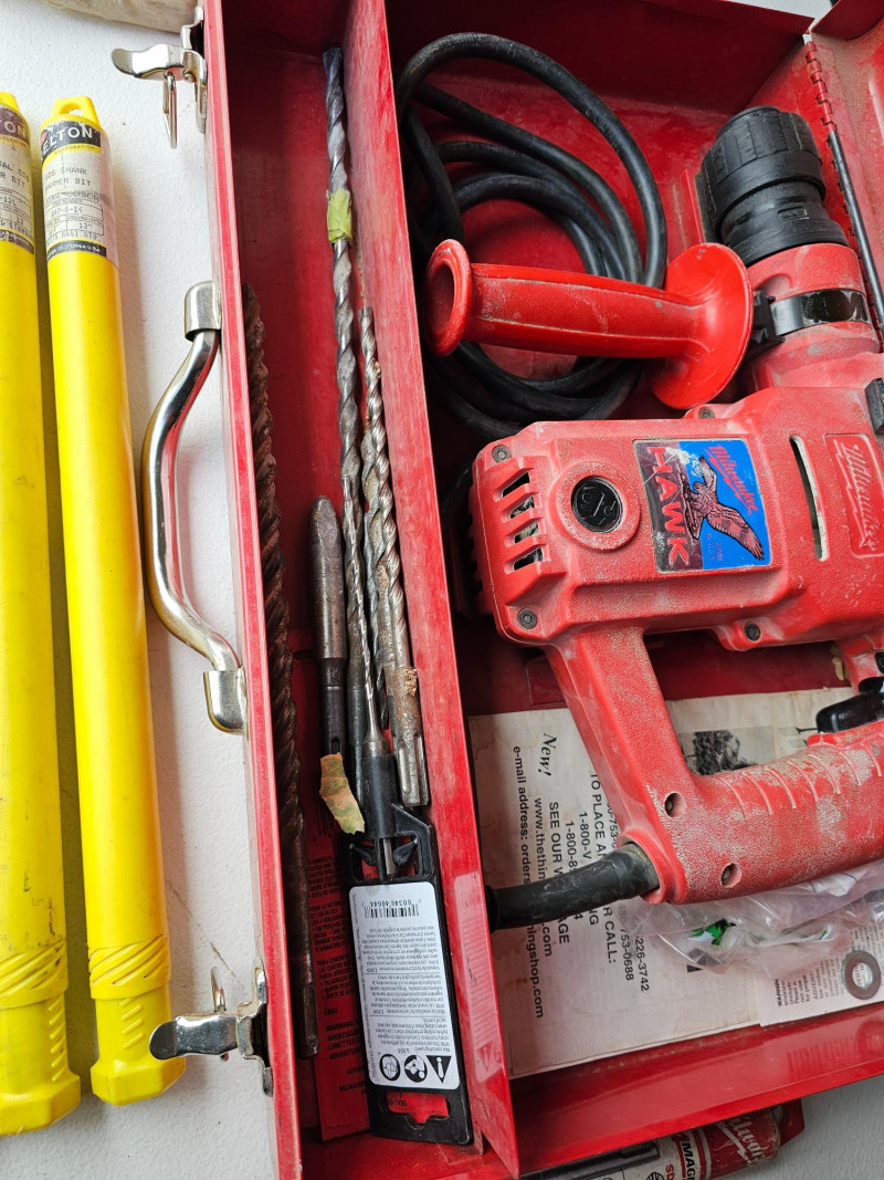 Milwaukee Heavy Duty Corded 1" Rotary Hammer Milwaukee #5362-1 6.8amp 120V Includes many hammer bits, hammer-drive anchors, 2 clean out brushes, and original metal case Tested - Works!