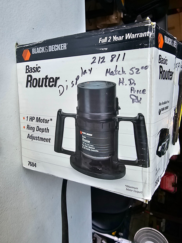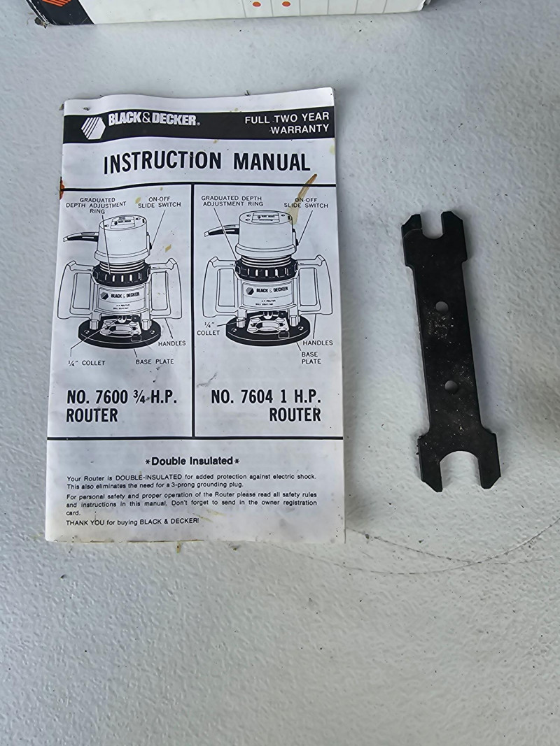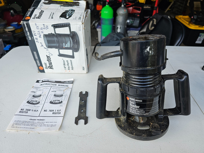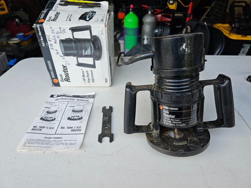Black & Decker Corded 1HP Basic Router Black & Decker #7604 Ring depth adjustment Includes original box, two router bit wrenches, and manual Tested - Works!