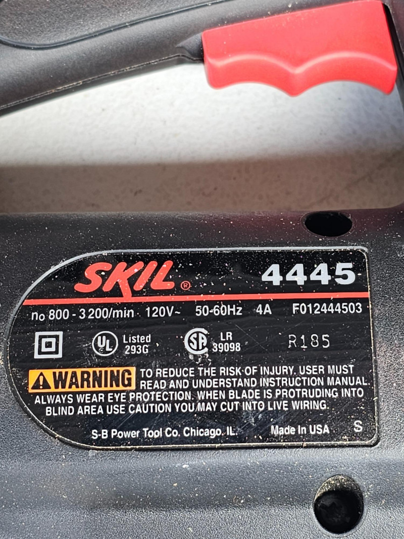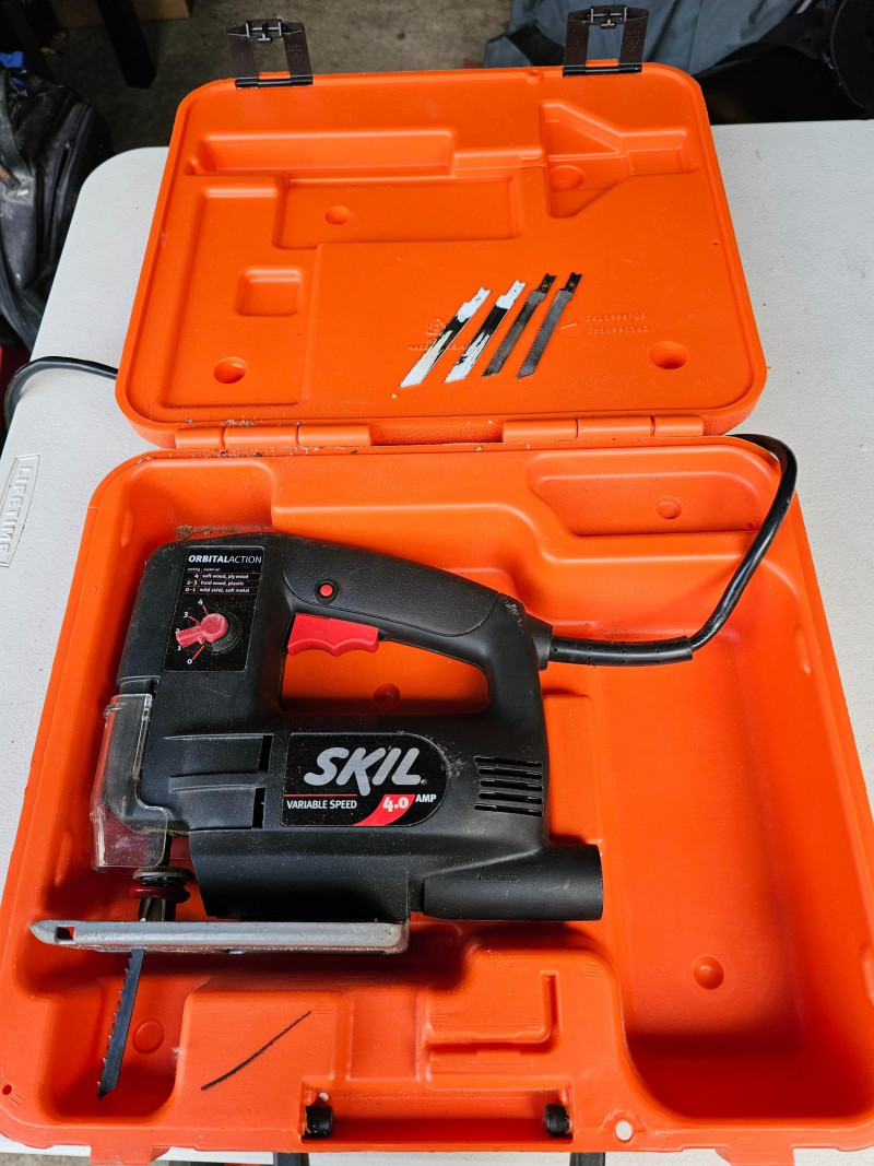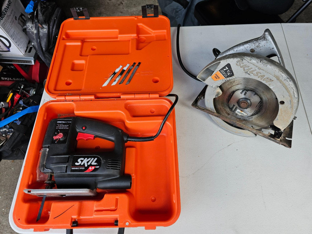 Skil Corded Orbital Jig Saw & Skil 7.25" Corded Circular Saw Skil Corded Orbital Jig Saw Model #4445 4amp 120V Includes hard case & 5 used blades Skil Corded 7.25" Circular Saw Model #574 10amp 115V Both Tested - Both Work!