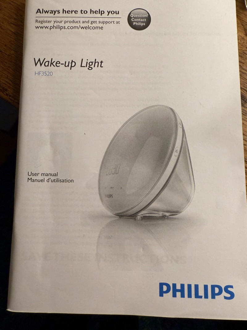 Phillips Wake Up Light with Clock & FM Radio 8”diameter by 5” deep