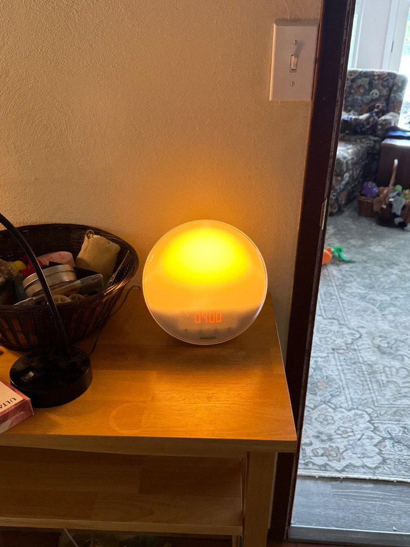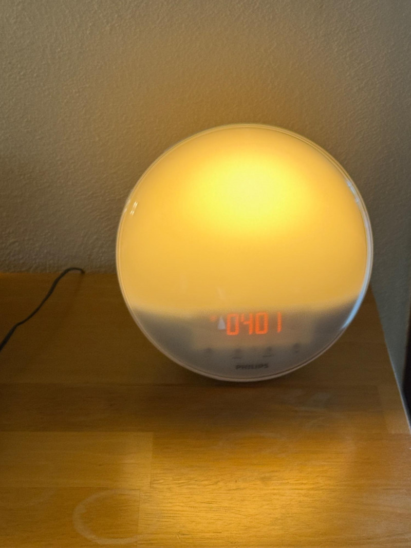 Phillips Wake Up Light with Clock & FM Radio Simulated sunrise light. 8” diameter by 5” deep.